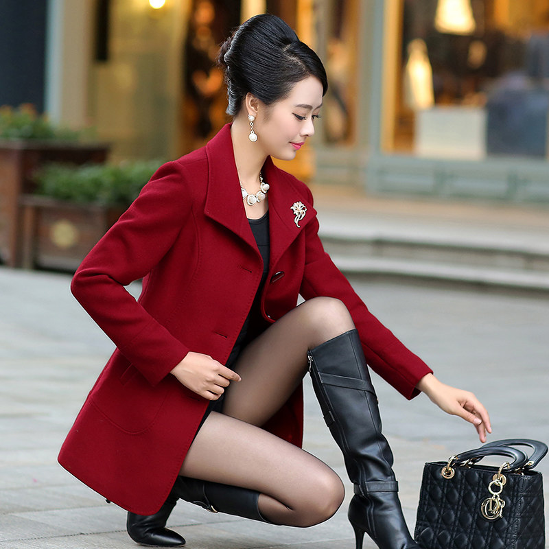 中老年女装秋冬装毛呢外套加肥加大码长袖上衣妈妈中长款呢子大衣