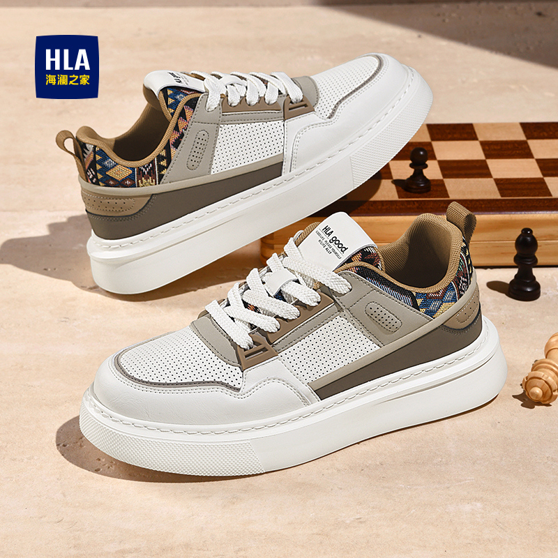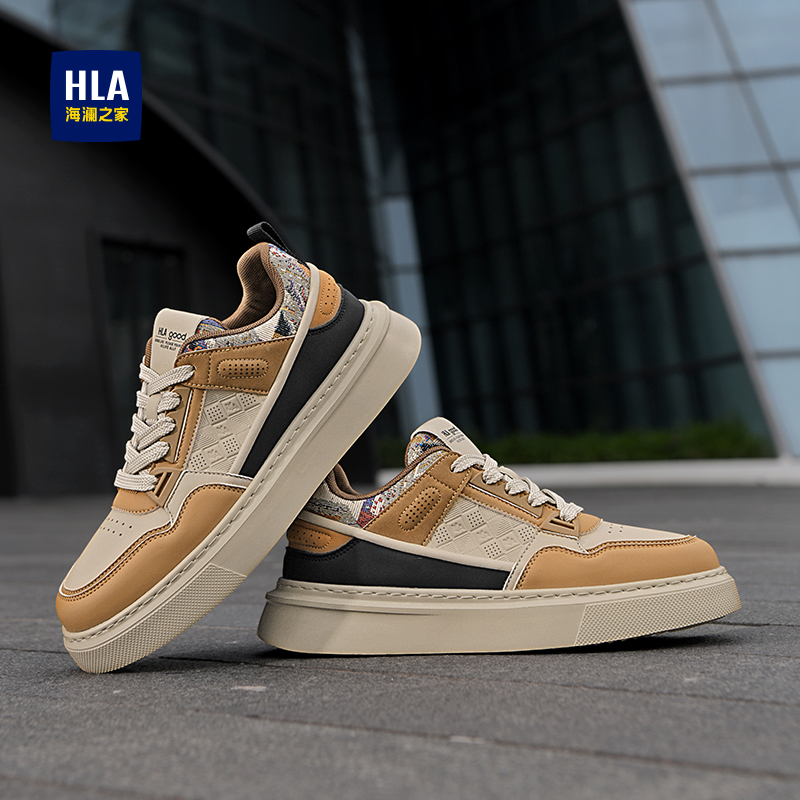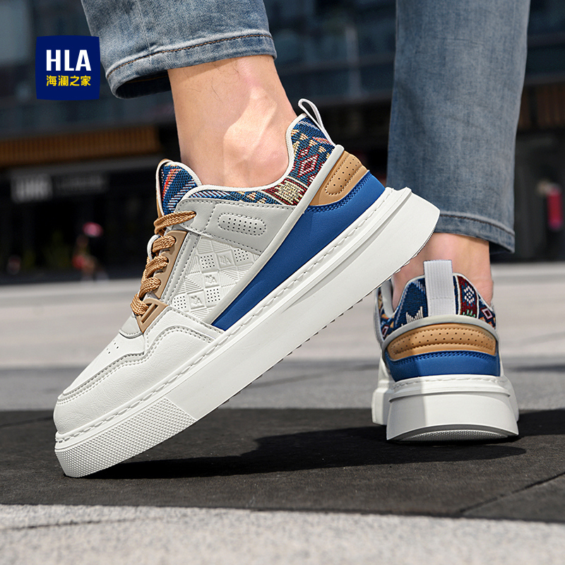 HLA/海澜之家男鞋新款秋季潮流百搭拼接板鞋厚底舒适透气休闲鞋