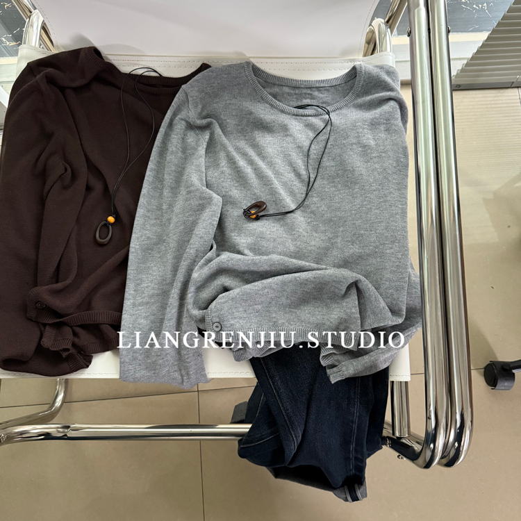 圆领纯色长袖百搭针织衫