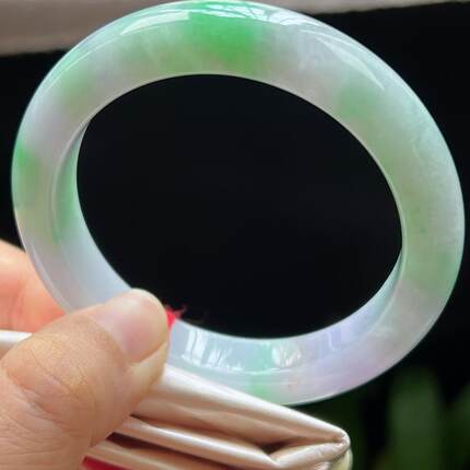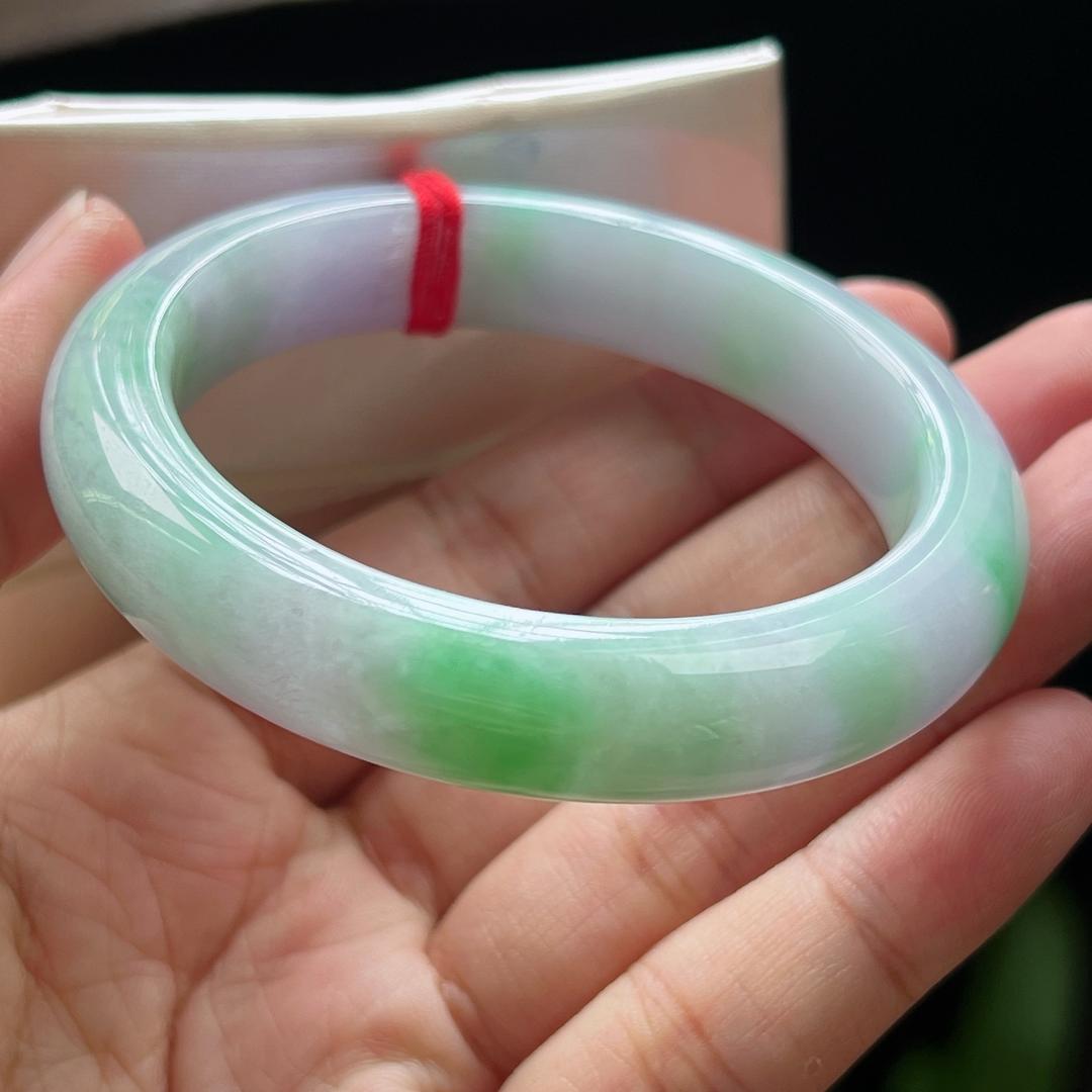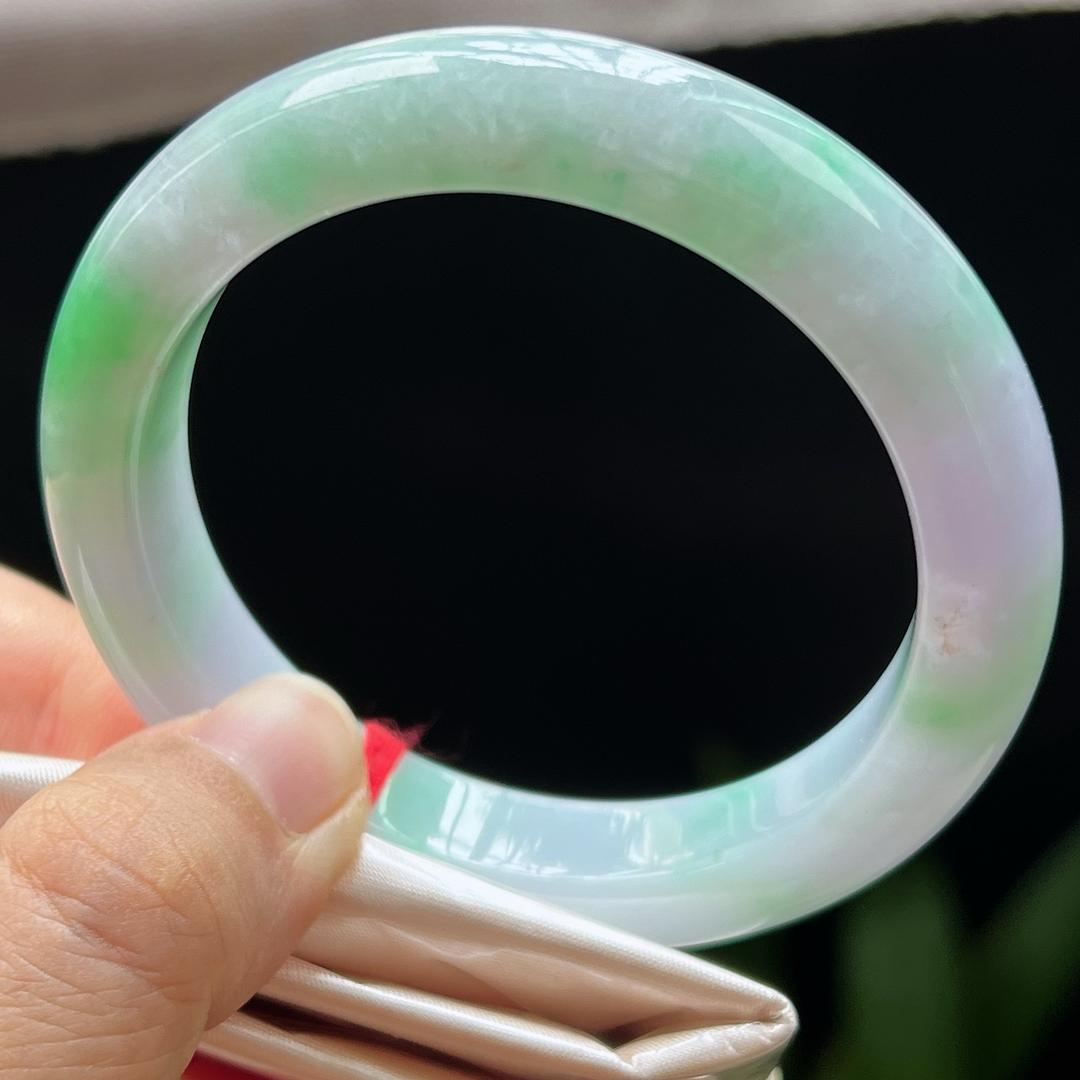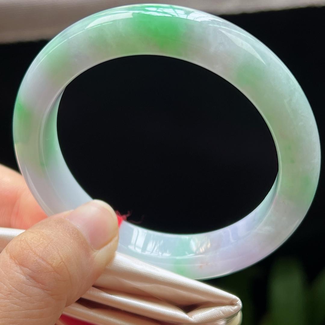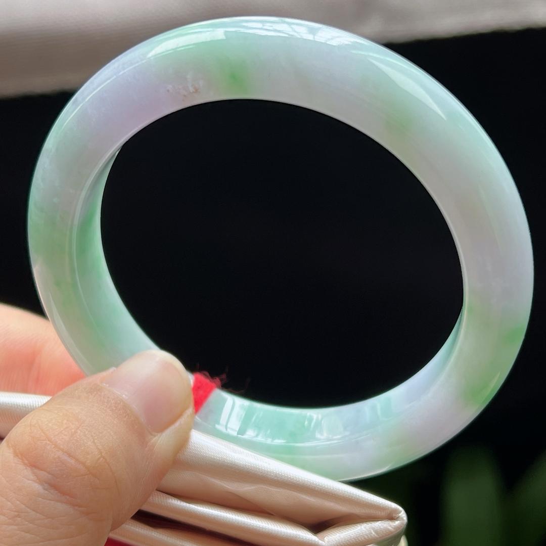 缅甸翡翠玉手镯平安镯正圈54圈口天然玉石A货冰种春彩新款1003