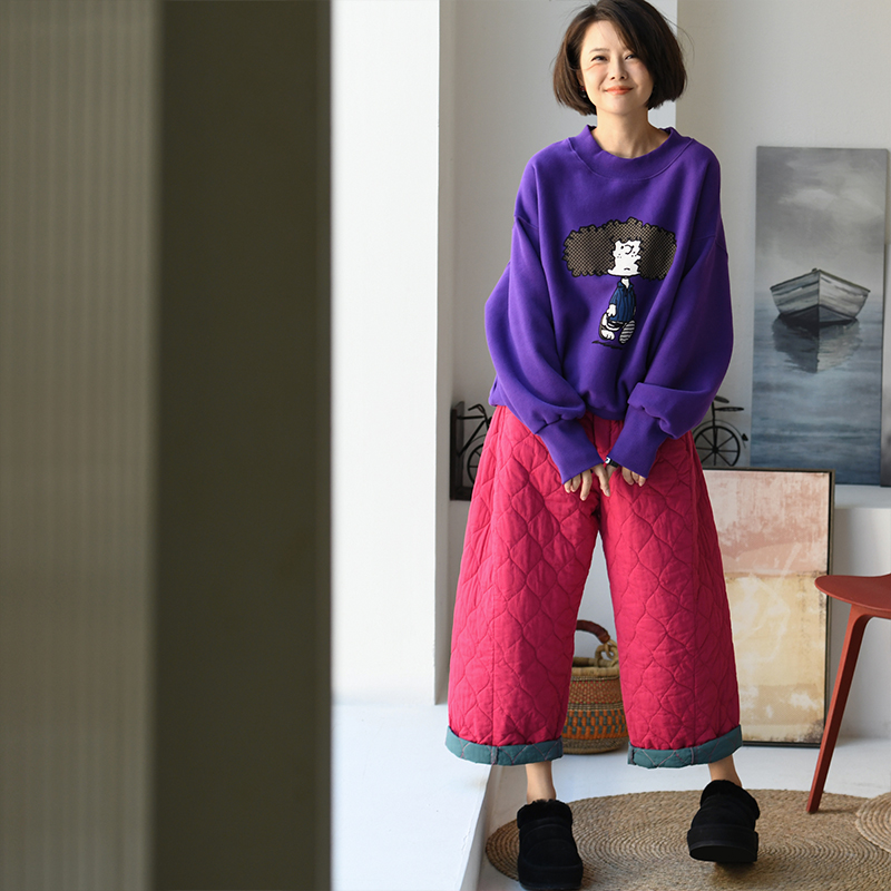 R0105C 韩版洋气纯棉加绒抱领宽边长袖娃娃印花卫衣女冬 米兰宣言