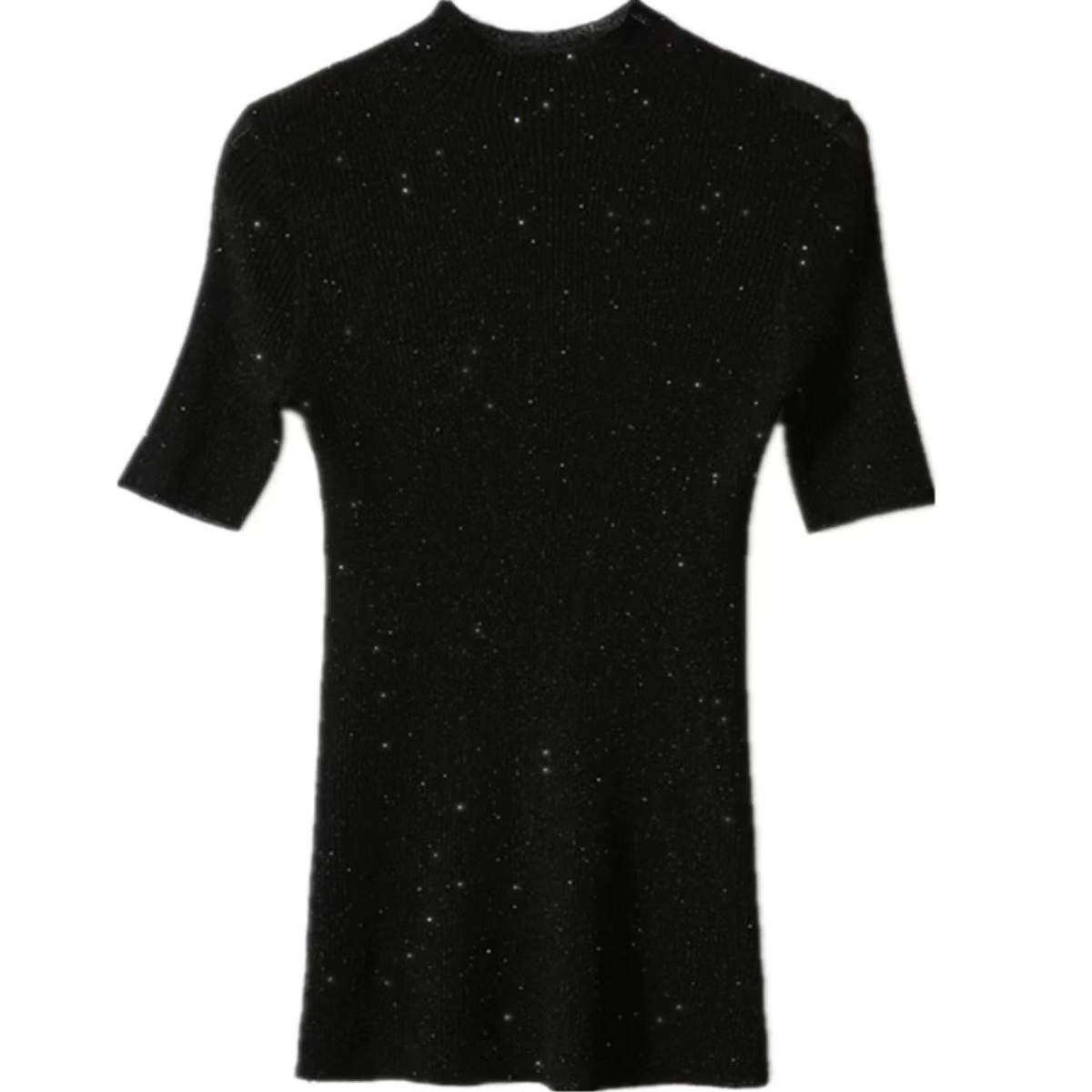 水溶羊毛秋季五分袖修身内搭针织衫半高领简约百搭套头女打底上衣