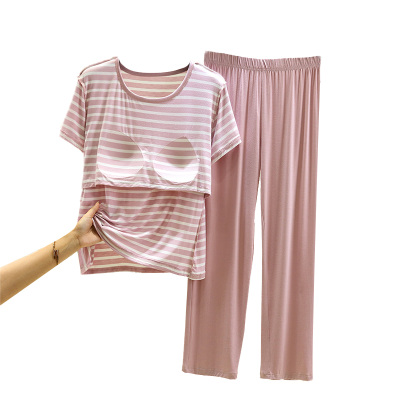 莫代尔短袖套装女夏季薄款上衣长裤免穿文胸休闲睡衣家居服两件套