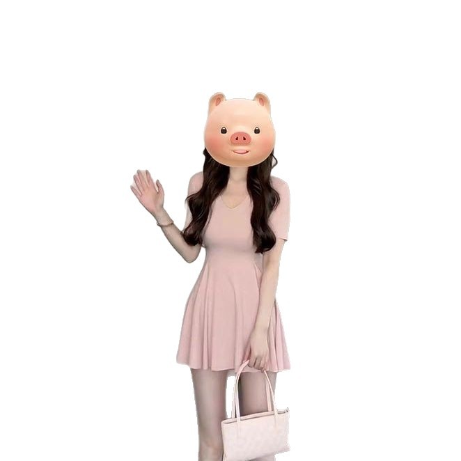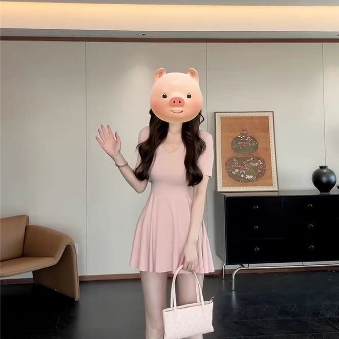 夏天法式v领短袖t恤连衣裙女2025年新款夏季小个子收腰显瘦a字裙