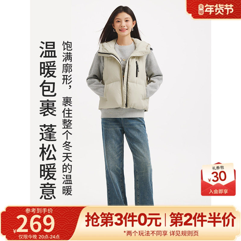 热风2025年冬季新款女士撞色机能羽绒背心简约百搭耐脏易打理