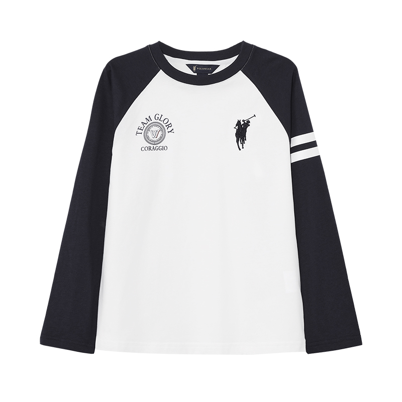 POLOWALK童装 男童T恤长袖撞色2025春秋新款儿童纯棉打底衫上衣