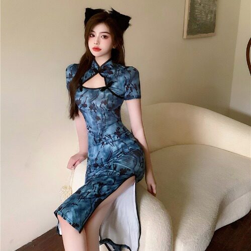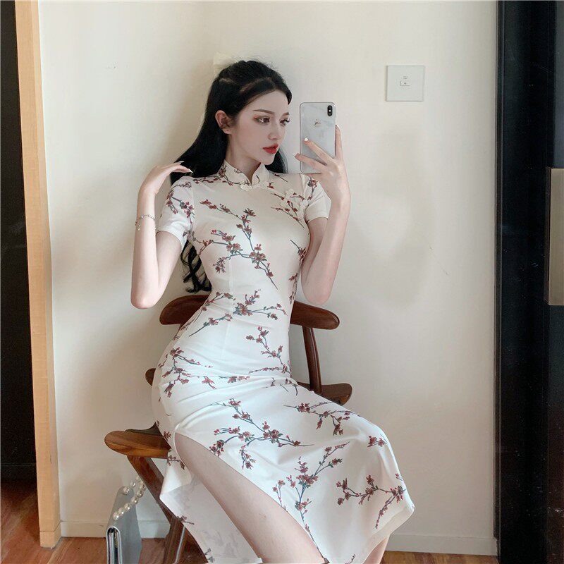 名媛紧身包臀旗袍超美花色复古性感无袖蕾丝日常工作服俩用连衣裙
