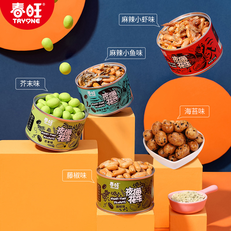 春旺夜猫花生麻辣小鱼小虾多味花生夜宵零食102g/88g(8味可选)