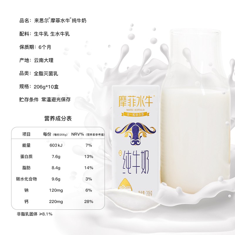 来思尔摩菲水牛200g*10盒纯牛奶云南大理特产特价整件儿童奶