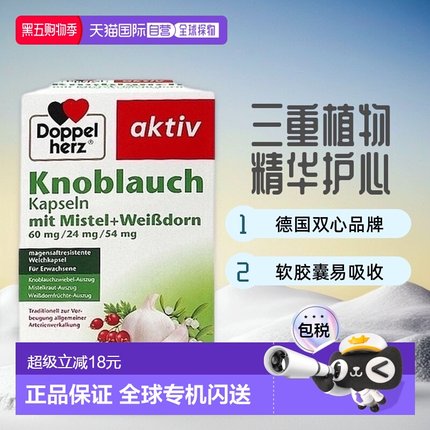 【480粒大容量】欧洲直邮Doppelherz双心大蒜素山楂精油软胶囊