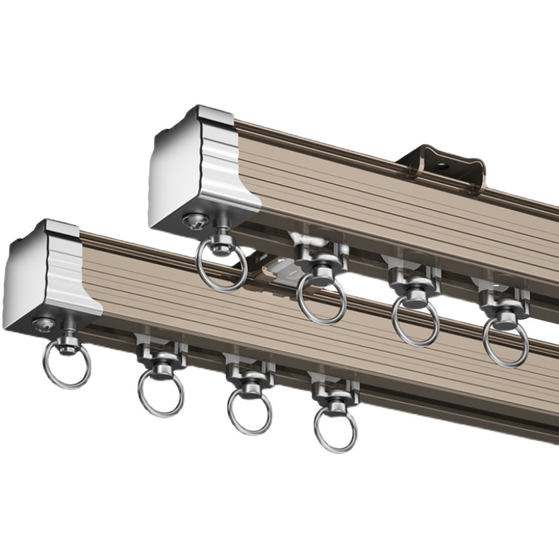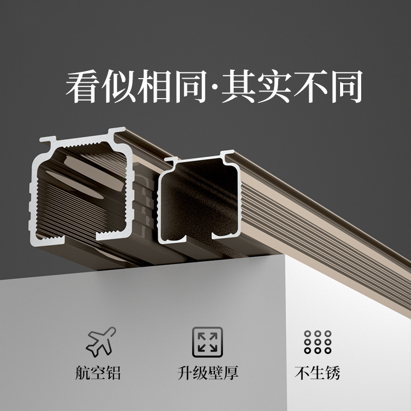 窗帘轨道杆滑轨铝合金导轨双轨直轨静音罗马杆顶装侧装挂钩滑道轨