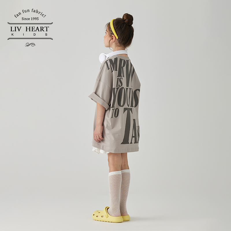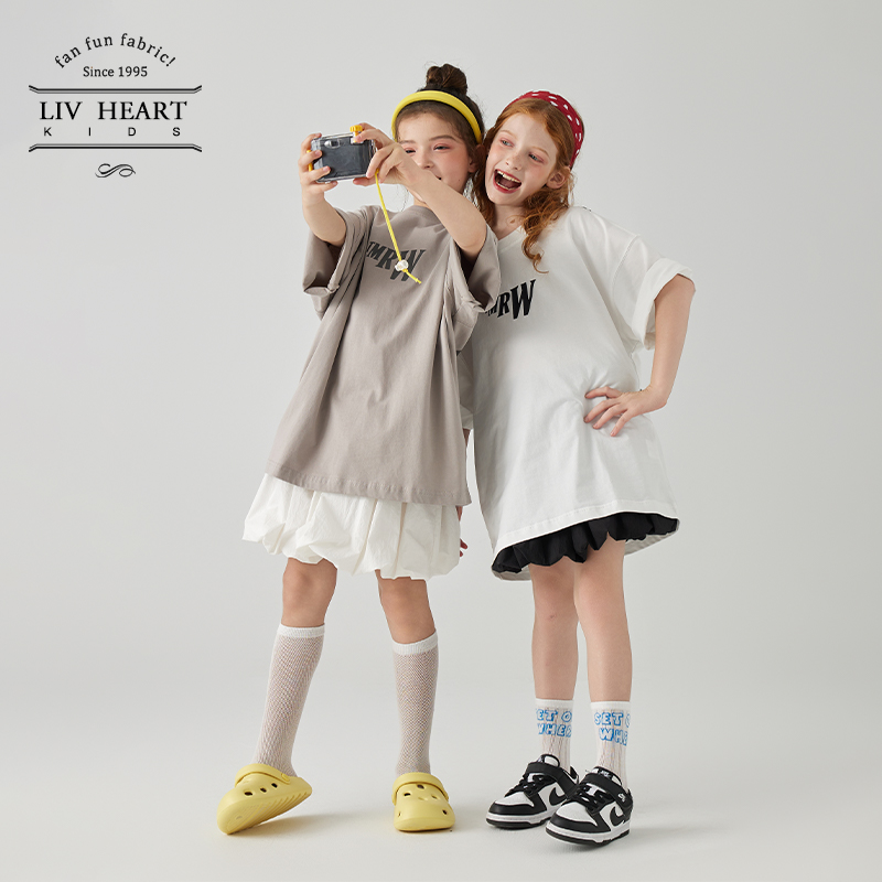 日本LIVHEART 女童中长款短袖T恤女夏季2025新款宽松纯棉上衣儿童