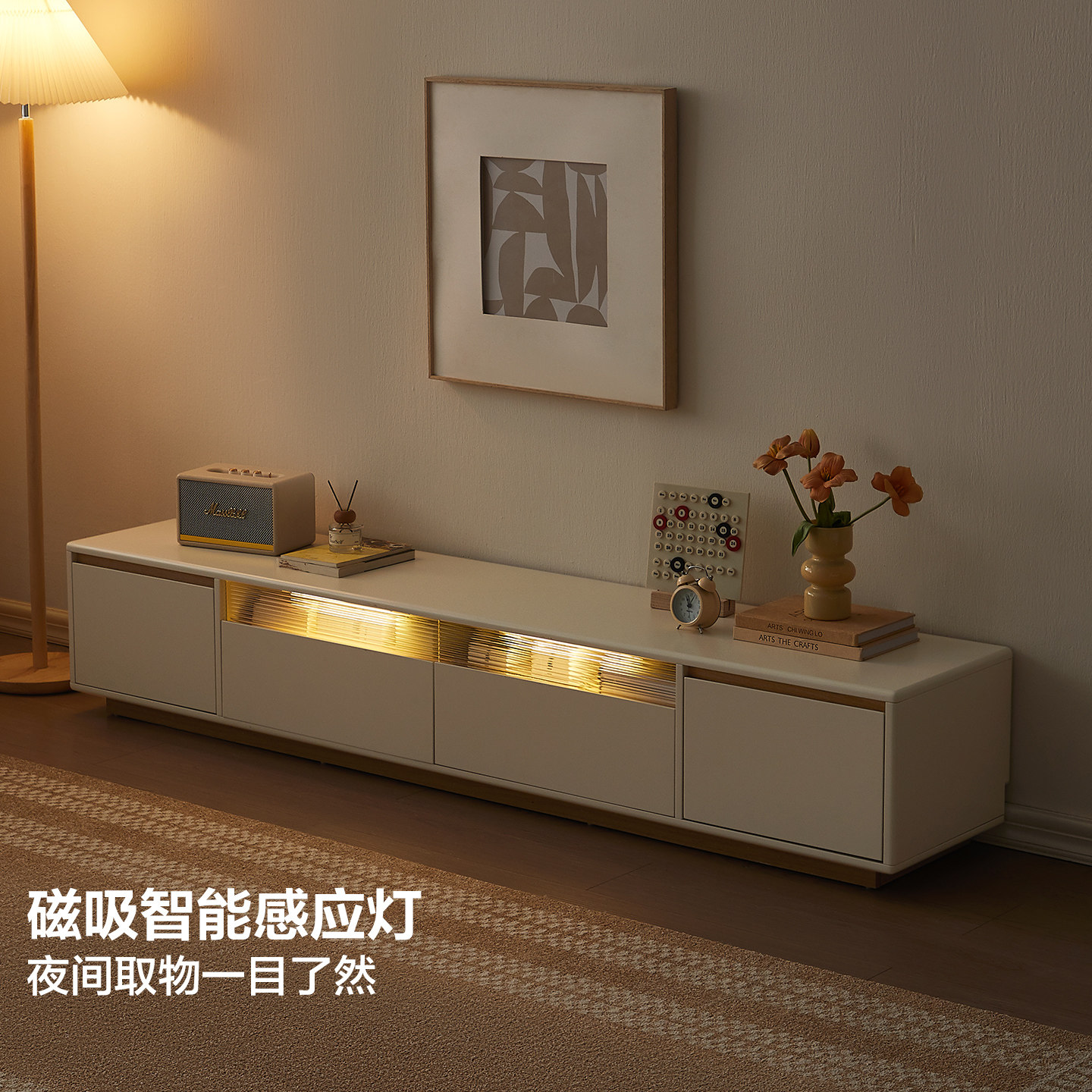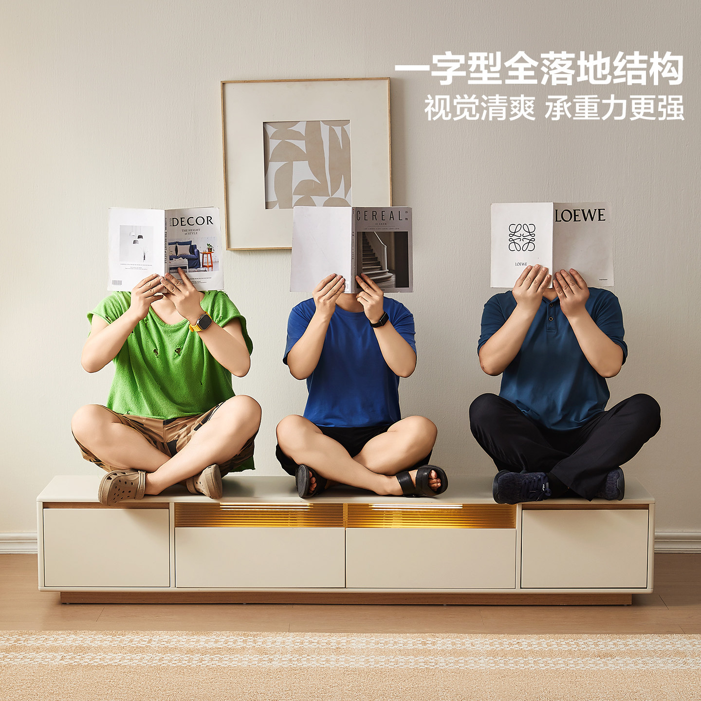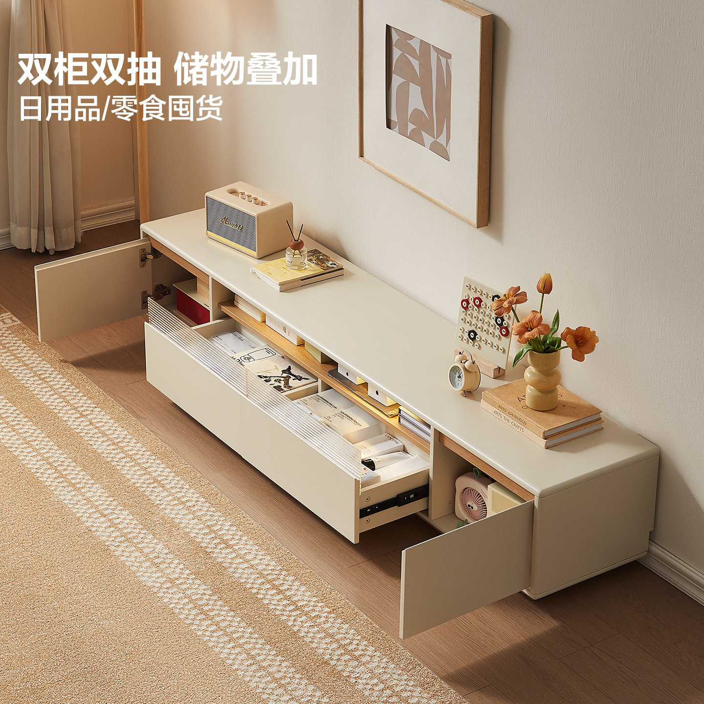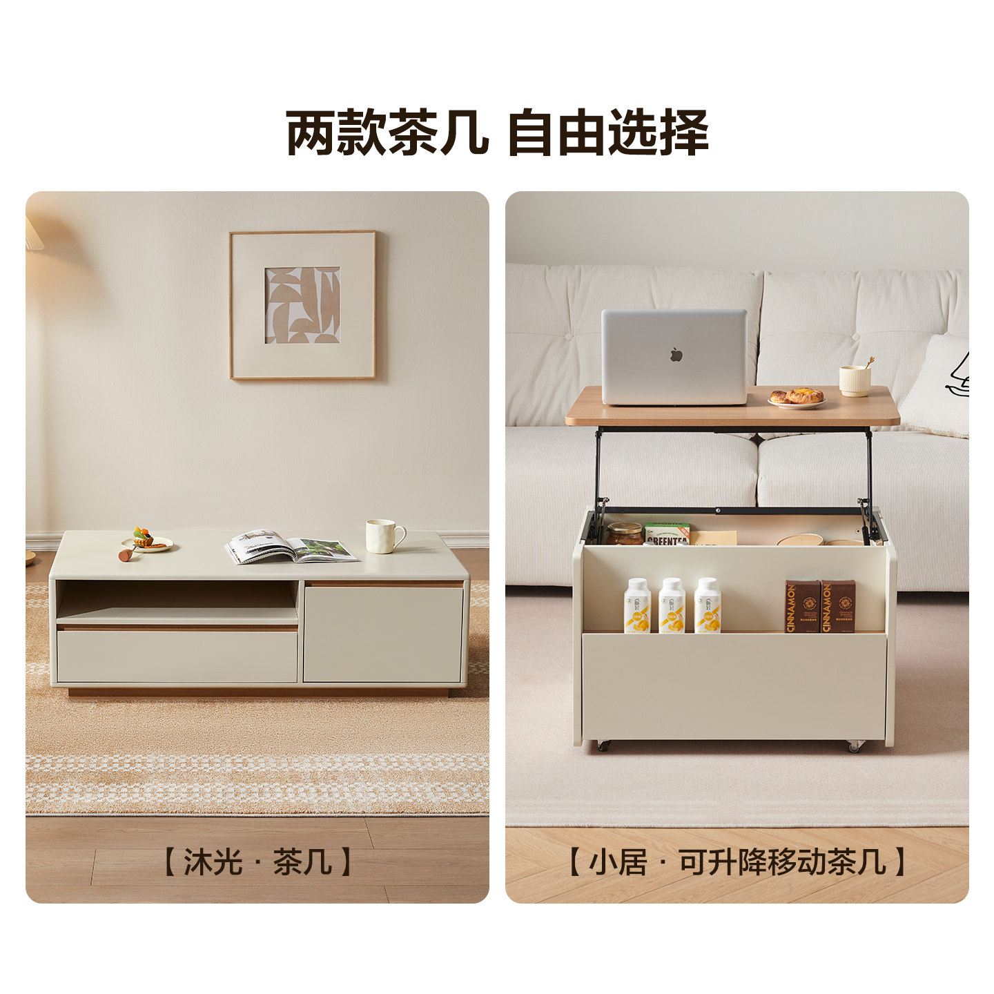 全友家居2025新款原木奶油风茶几电视柜组合客厅可升降茶几储物柜
