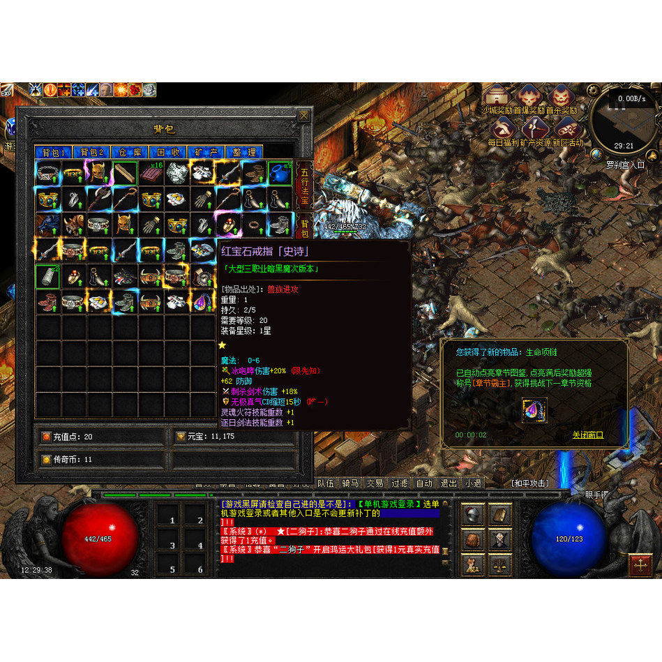 热血传奇单机版GEE暗黑之门起源魔次三职业随机鉴定星级BUF10大陆