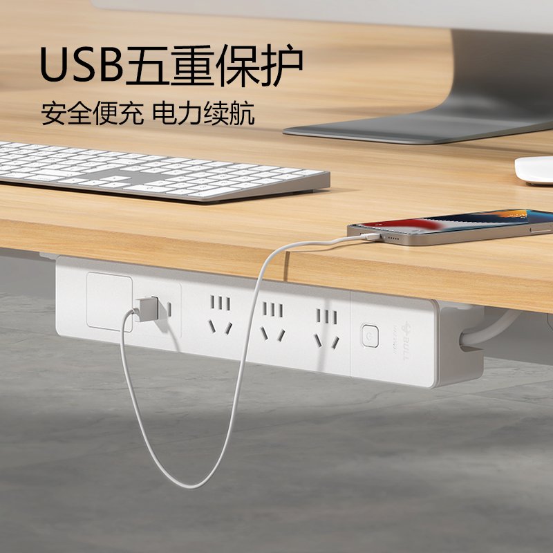 公牛嵌合式桌面插座USB多功能免开孔书桌家用办公插排排插插线板