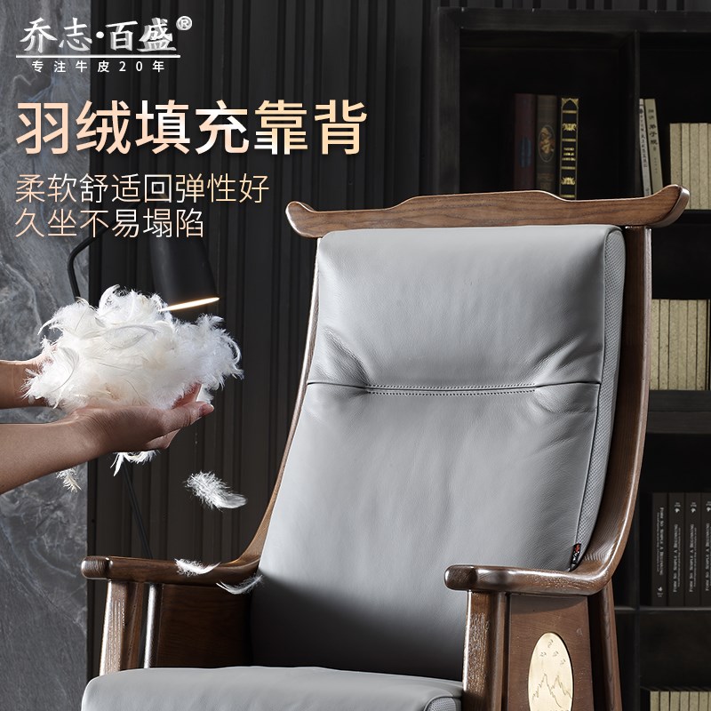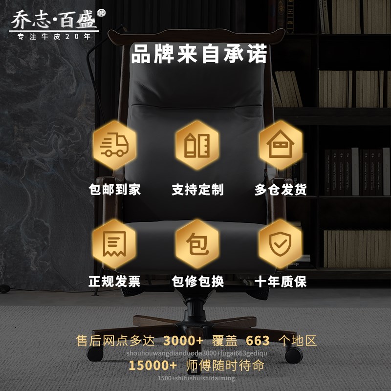真皮老板椅实木中式商务办公椅牛皮大班椅舒适办公室家用高档椅子