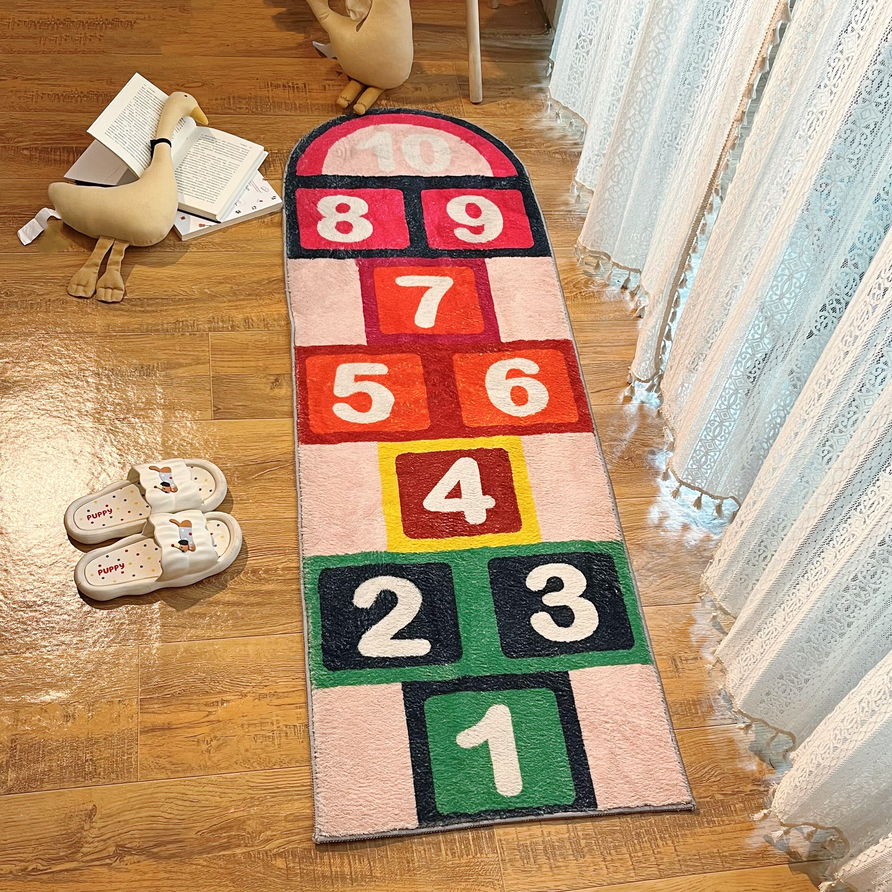 童趣跳房子数字防滑地垫 家用卧室床边长条地毯