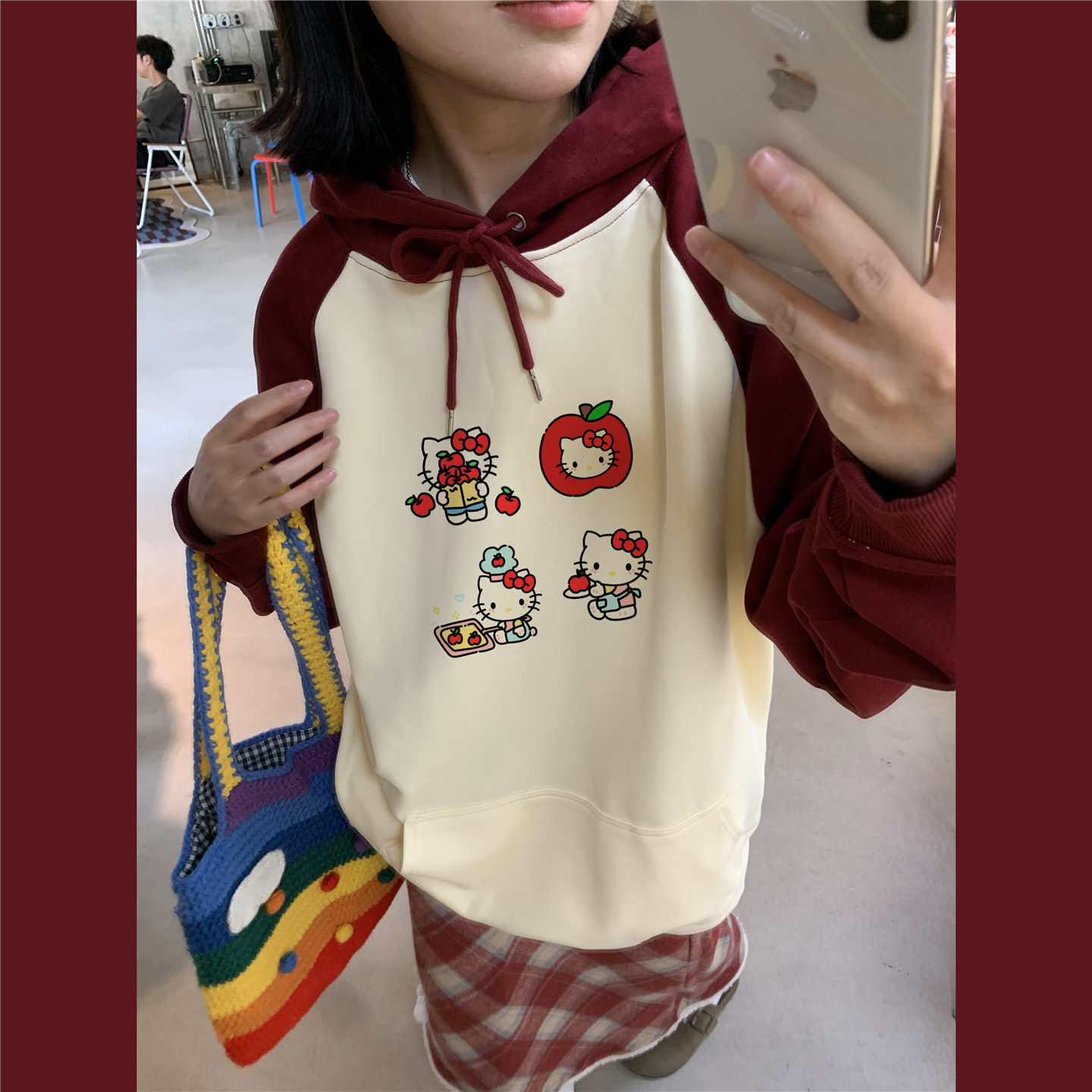 少女Kt苹果kitty猫连帽卫衣上衣