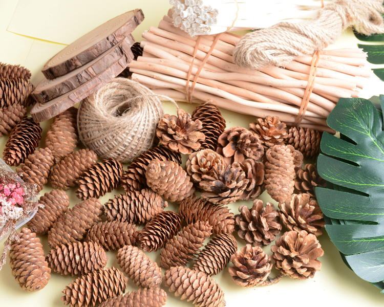 干花松果装饰品摆件diy幼儿园环创手工材料森系树枝木棍圆木片