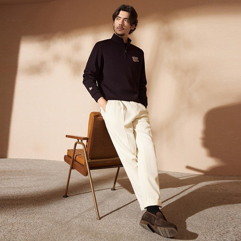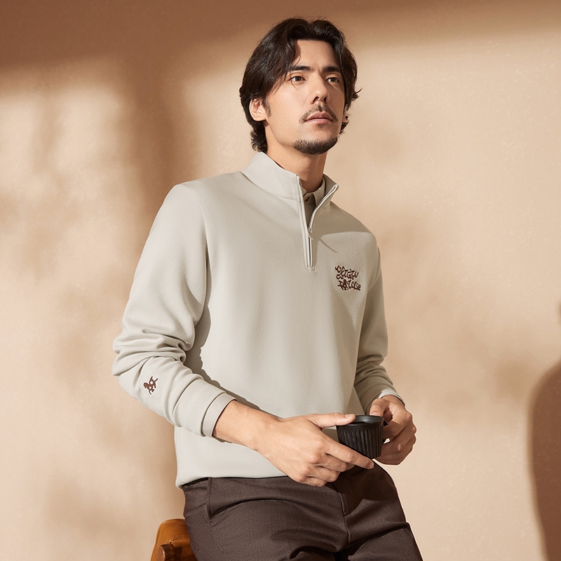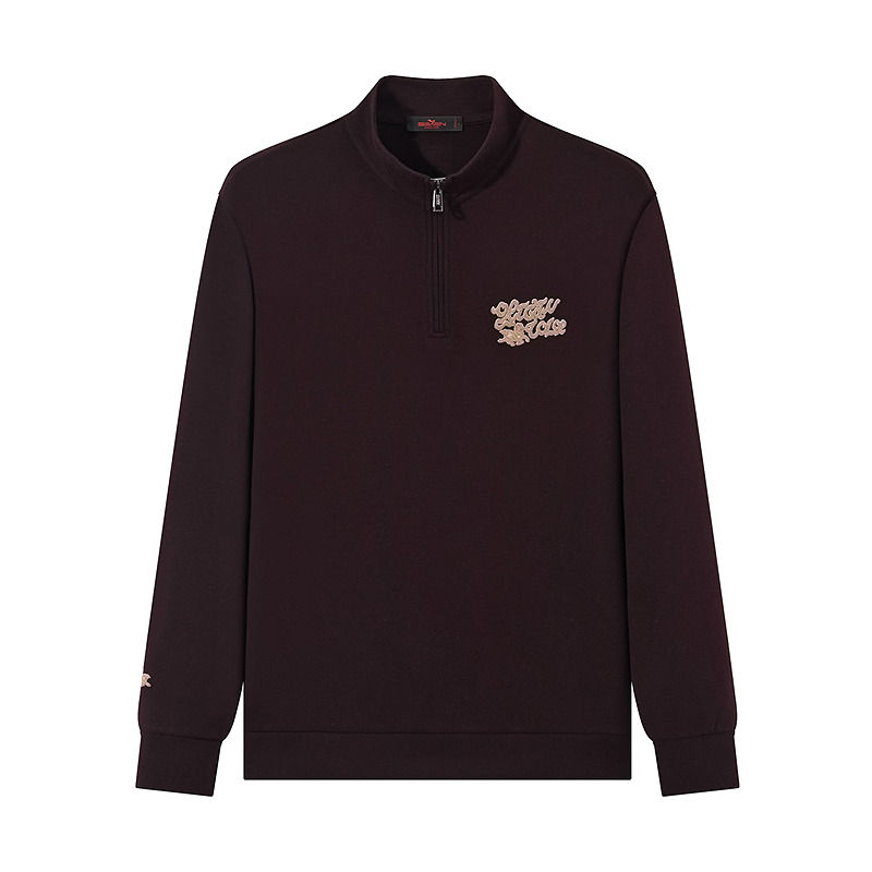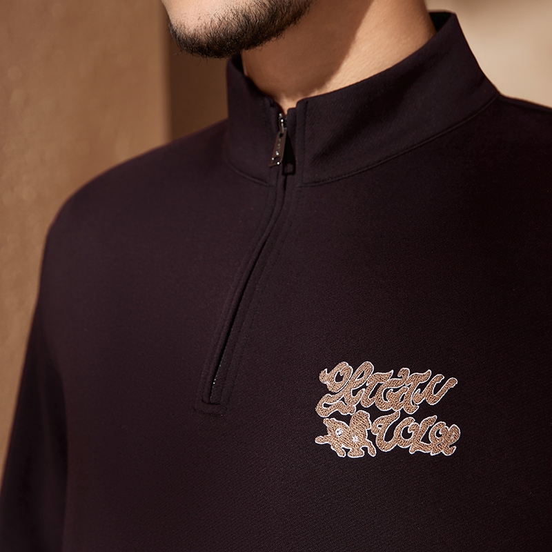 【中华立领】柒牌半拉链卫衣舒适国风时尚字母毛巾绣休闲上衣