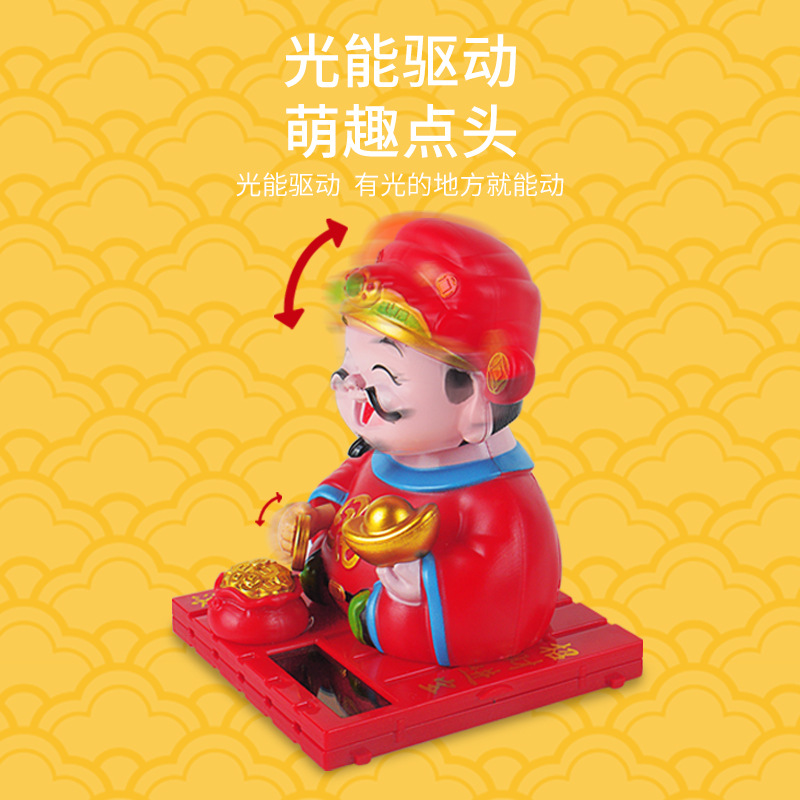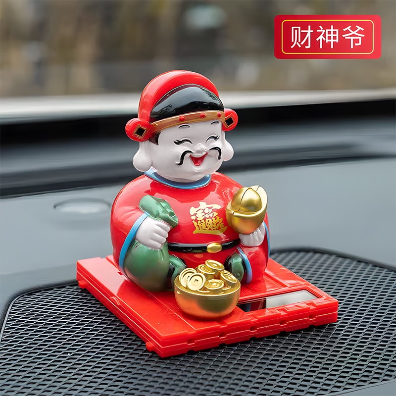 财神爷太阳能摇头汽车摆件办公室家用礼物车载解压招财收银台平安