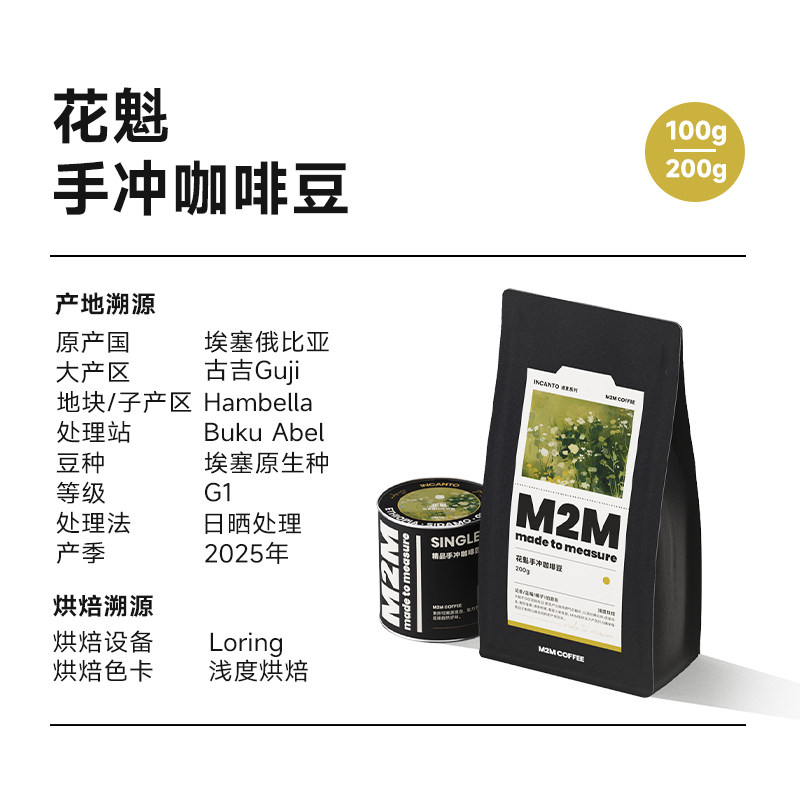 M2M花魁Select 花香蓝莓 埃塞日晒罕贝拉G1手冲精品咖啡豆粉100g