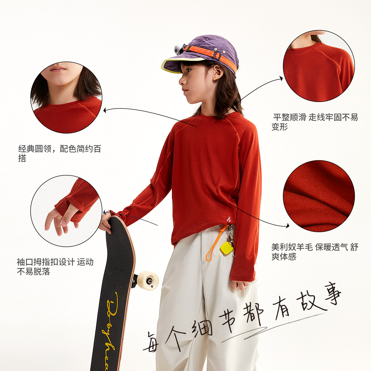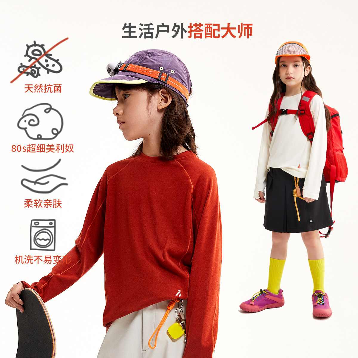 inknowing美利奴羊毛透气上衣男童女童打底衫美丽诺夏儿童长袖T恤