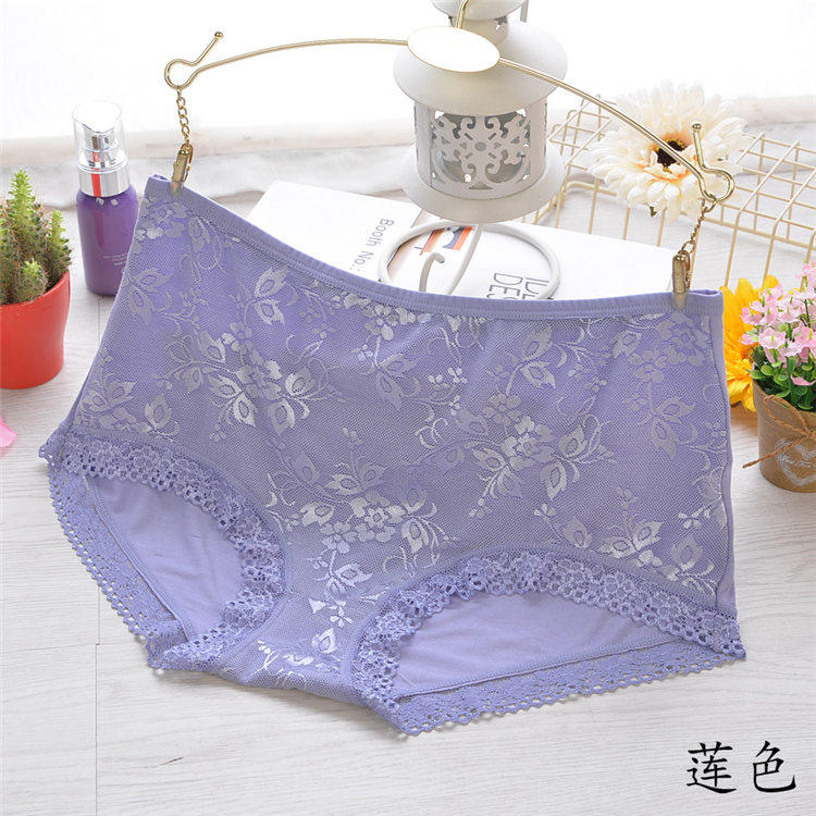 4条蕾丝竹纤维中腰大码棉档提臀少女蕾丝莫代尔纯棉底裆三角内裤