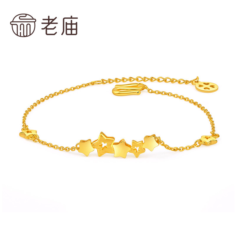 老庙黄金足金亮面星星五角星手链女款金饰送女友官方旗舰正品
