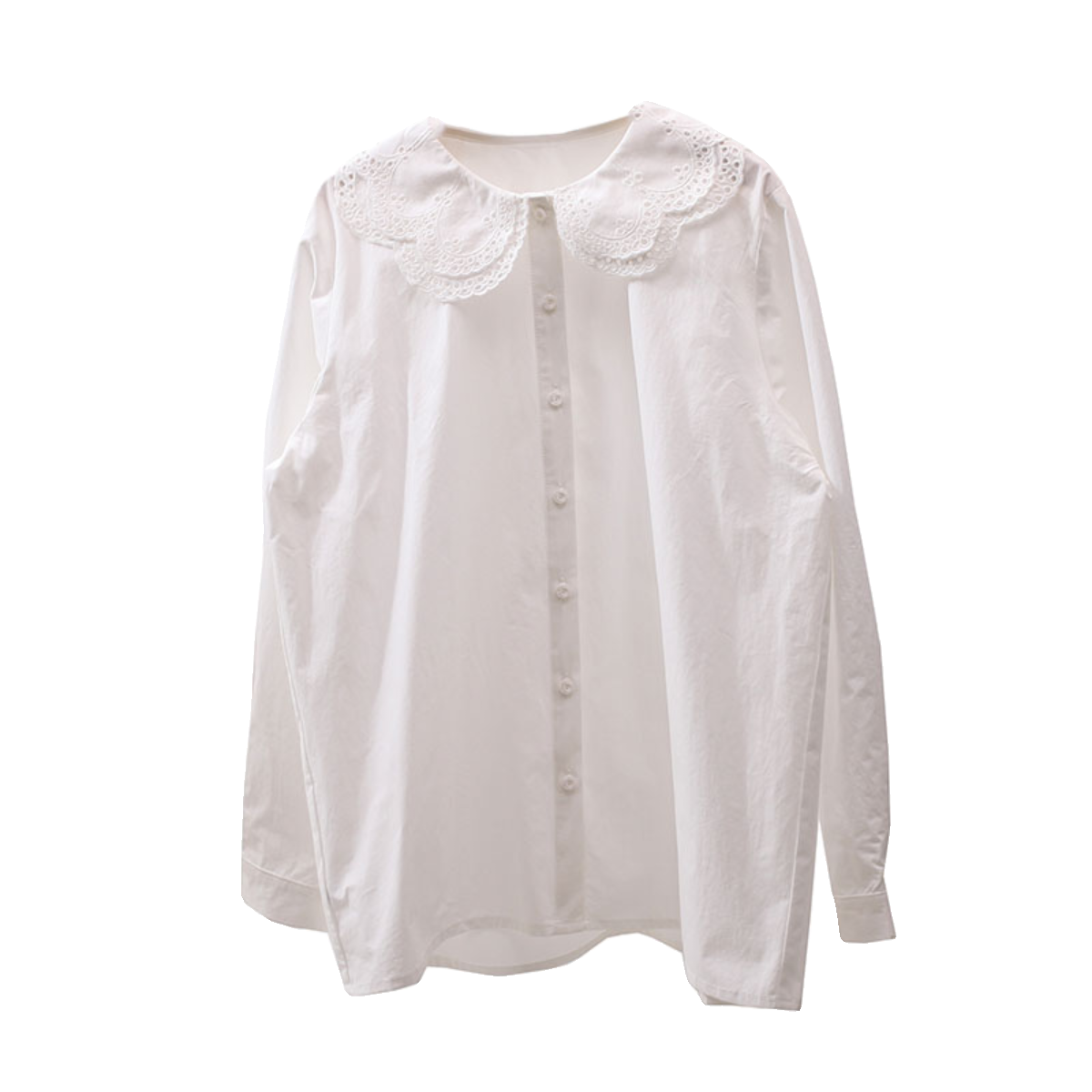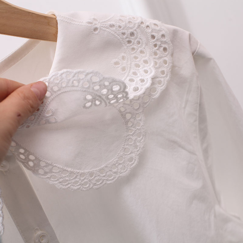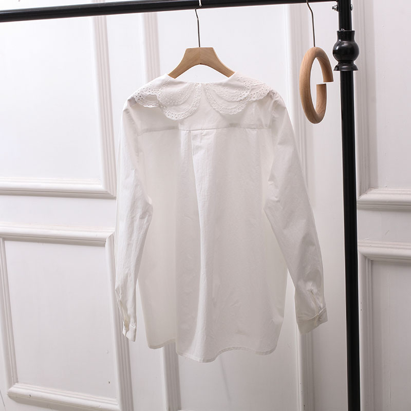 新款百搭日系蕾丝娃娃领白衬衫文艺小清新森女系大码上衣打底衫春