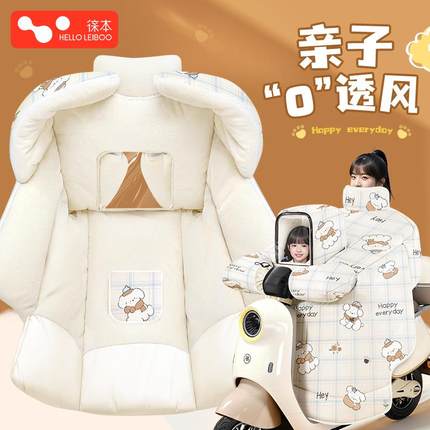 亲子款电动车挡风被带小孩2025新款冬季加绒加厚斗篷电瓶四季通用