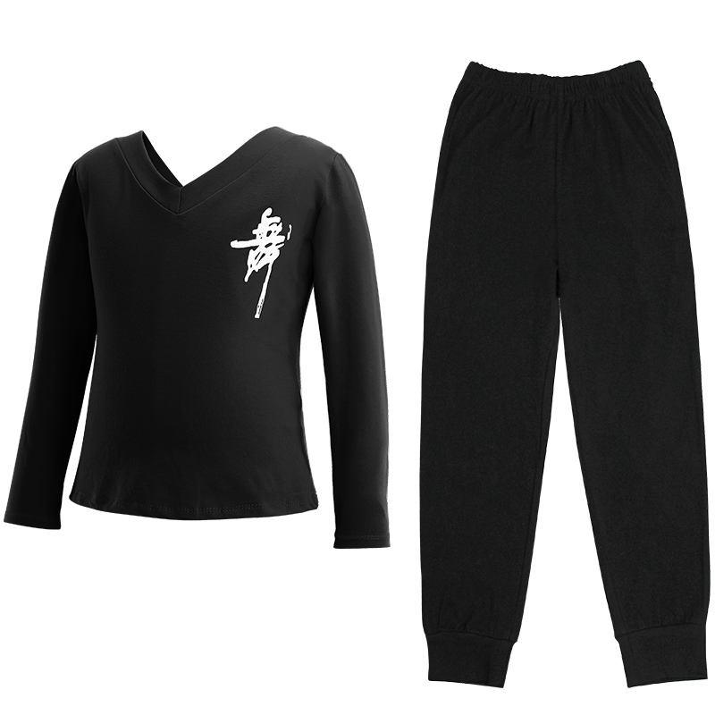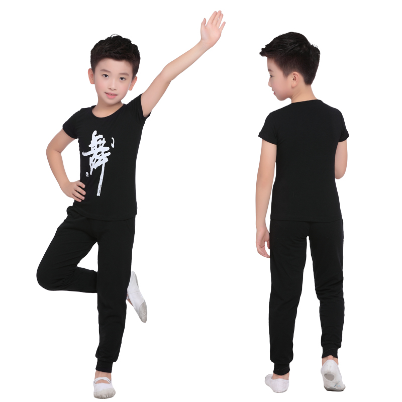 儿童舞蹈服男童拉丁舞服中国舞形体服黑色跳舞上衣男孩舞蹈练功服