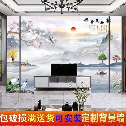 2023款瓷砖电视背景墙岩板客厅新中式简约微晶石大理石影视墙壁画
