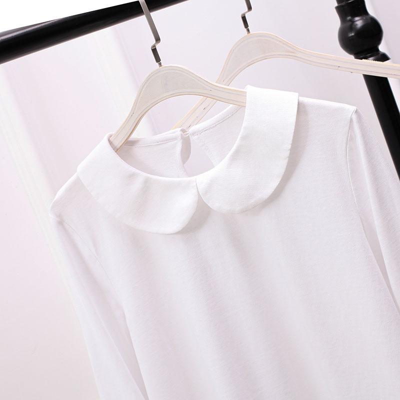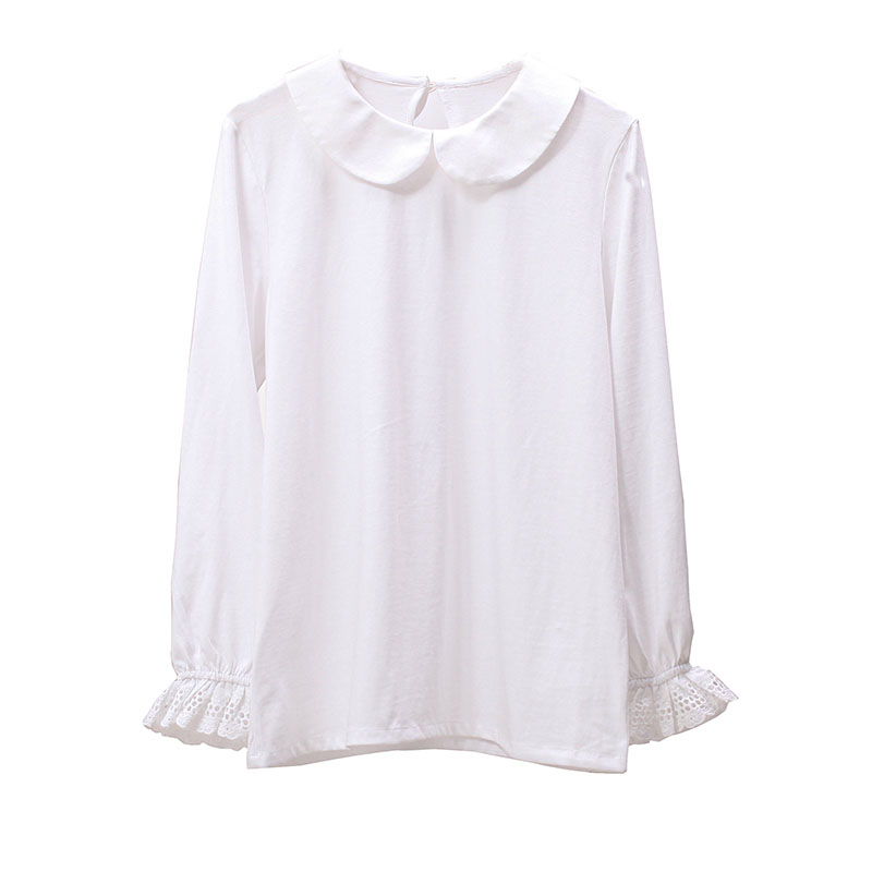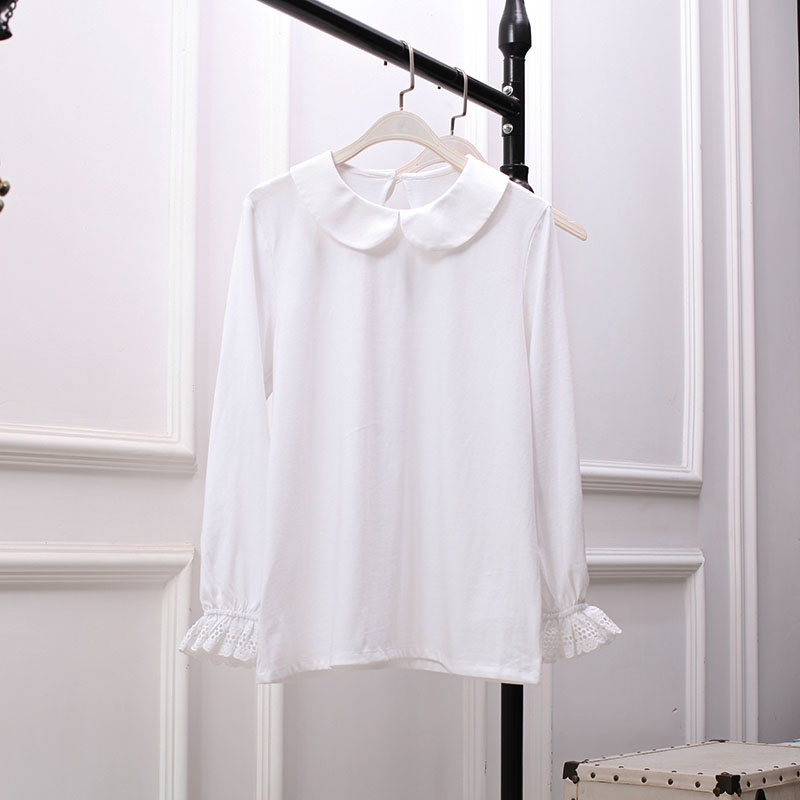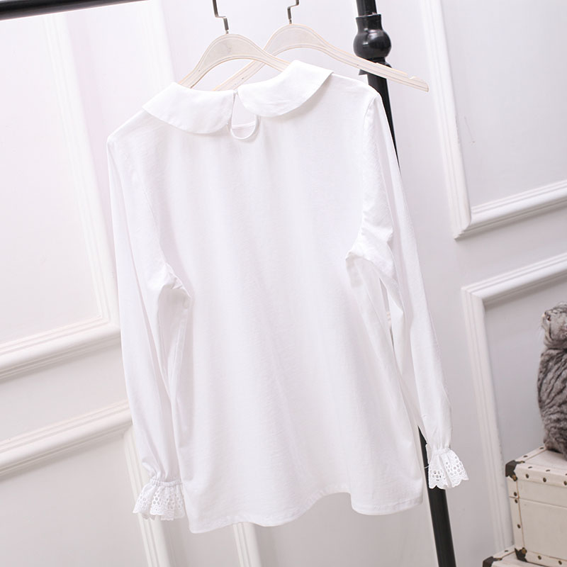 秋冬文艺娃娃领打底衫大码宽松白衬衣设计感蕾丝灯笼袖长袖上衣胖