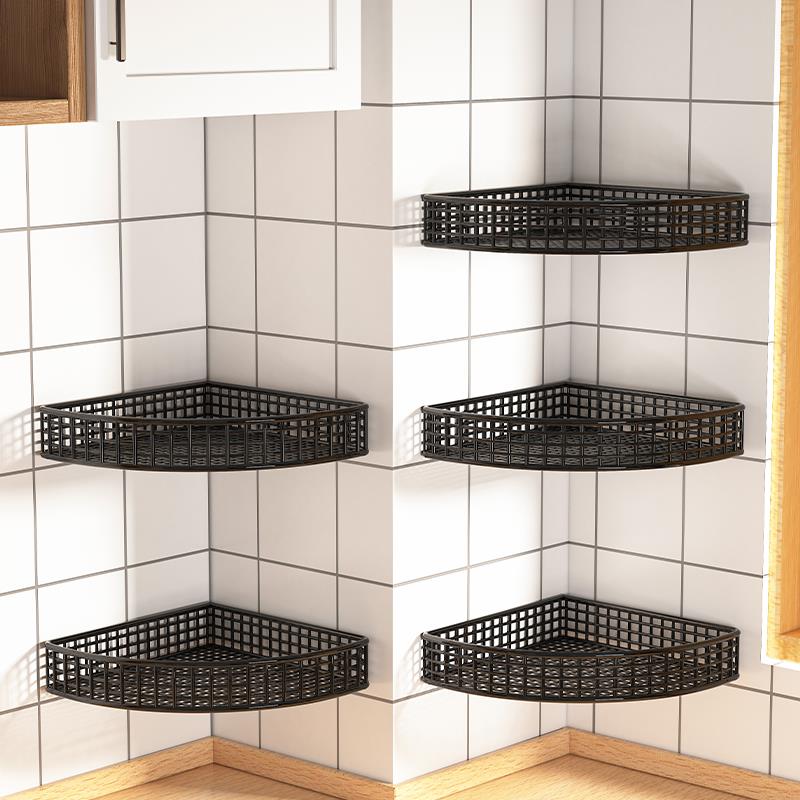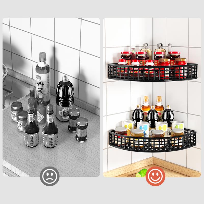 厨房转角置物架墙上壁挂式拐角挂篮多功能调味料架免打孔三角架子