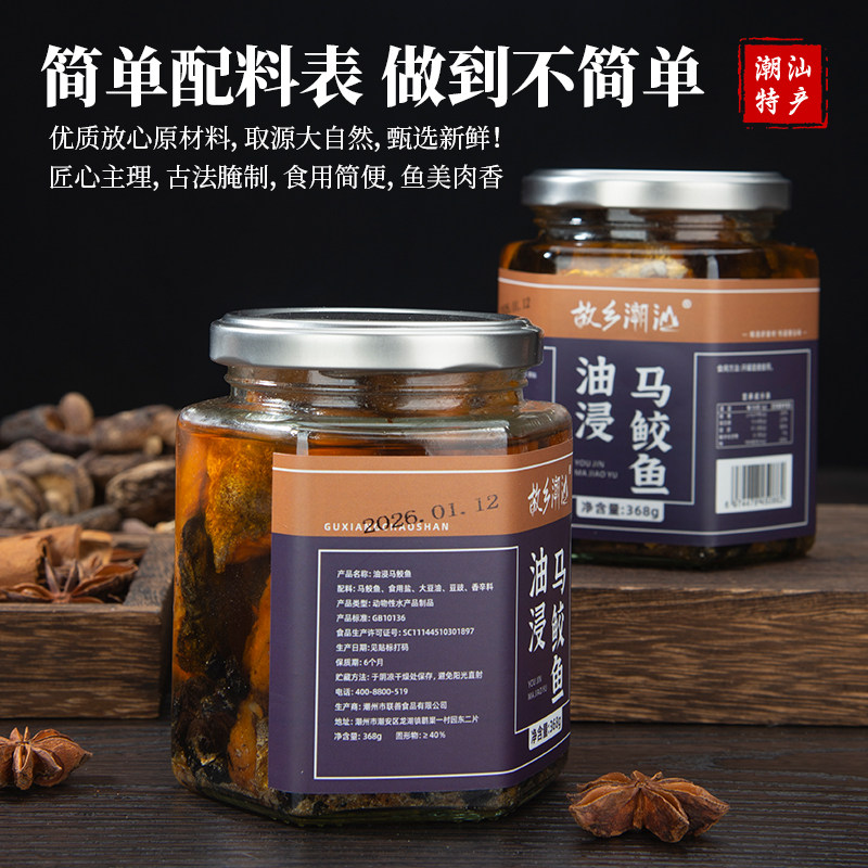 故乡潮汕油浸马鲛咸鱼368g/瓶潮汕腌制即食佐餐杂咸马鲛鱼咸鱼