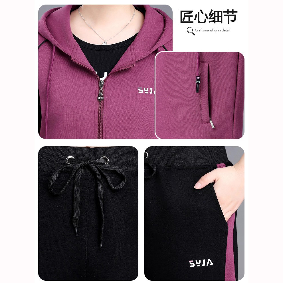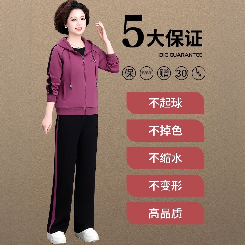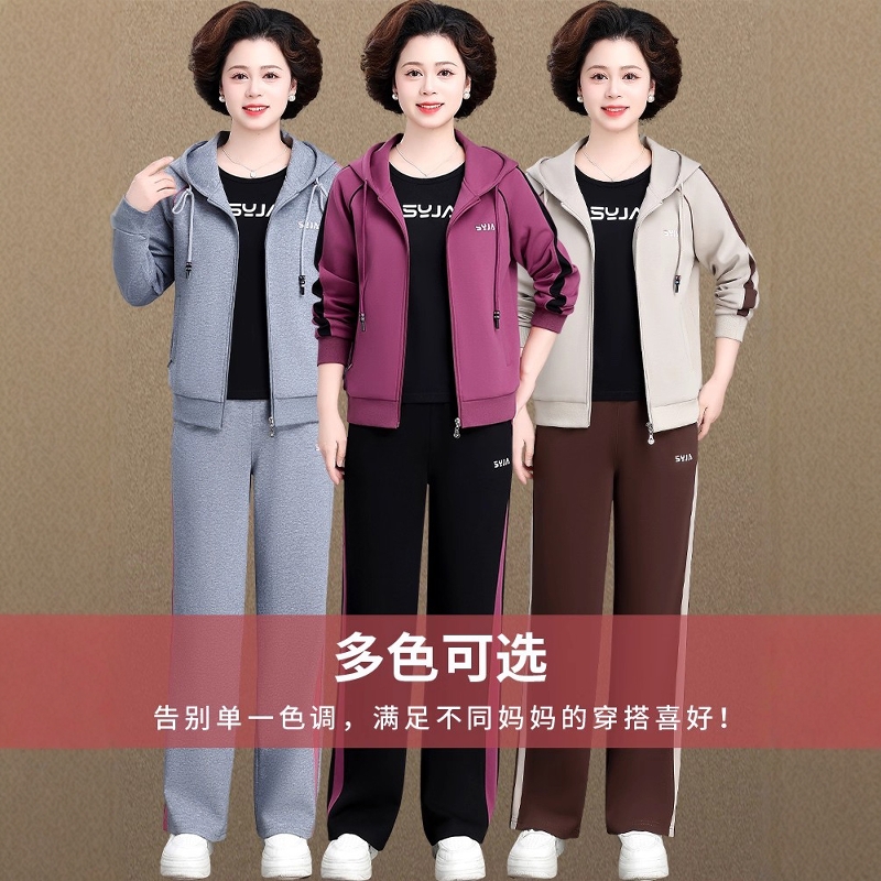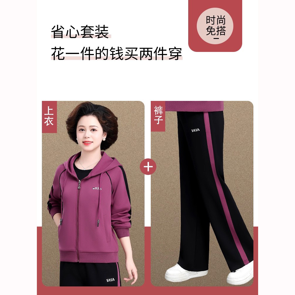 中年妈妈春装卫衣外套中老年运动套装女春秋款老人衣服两件套高贵