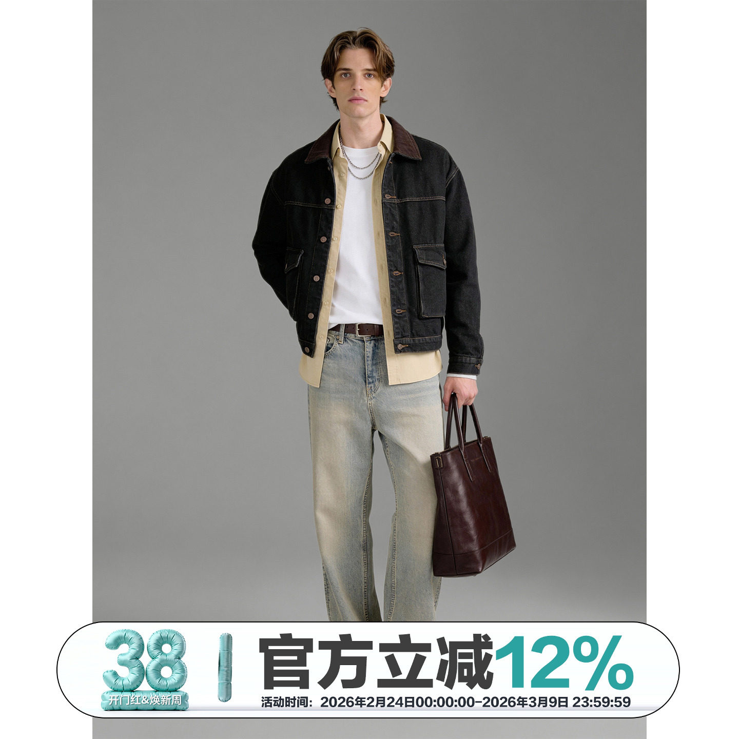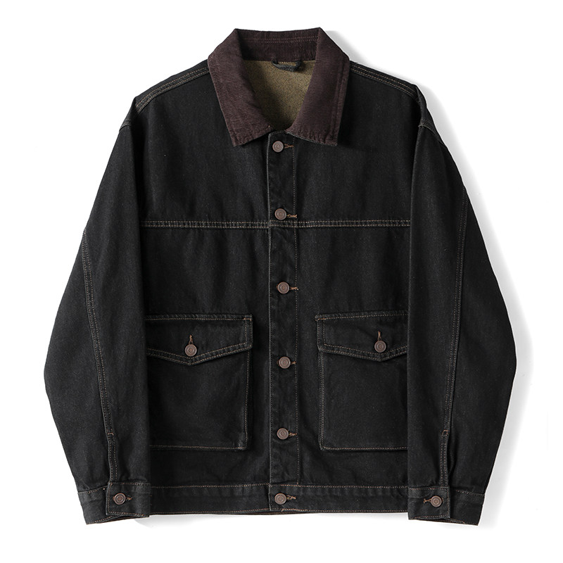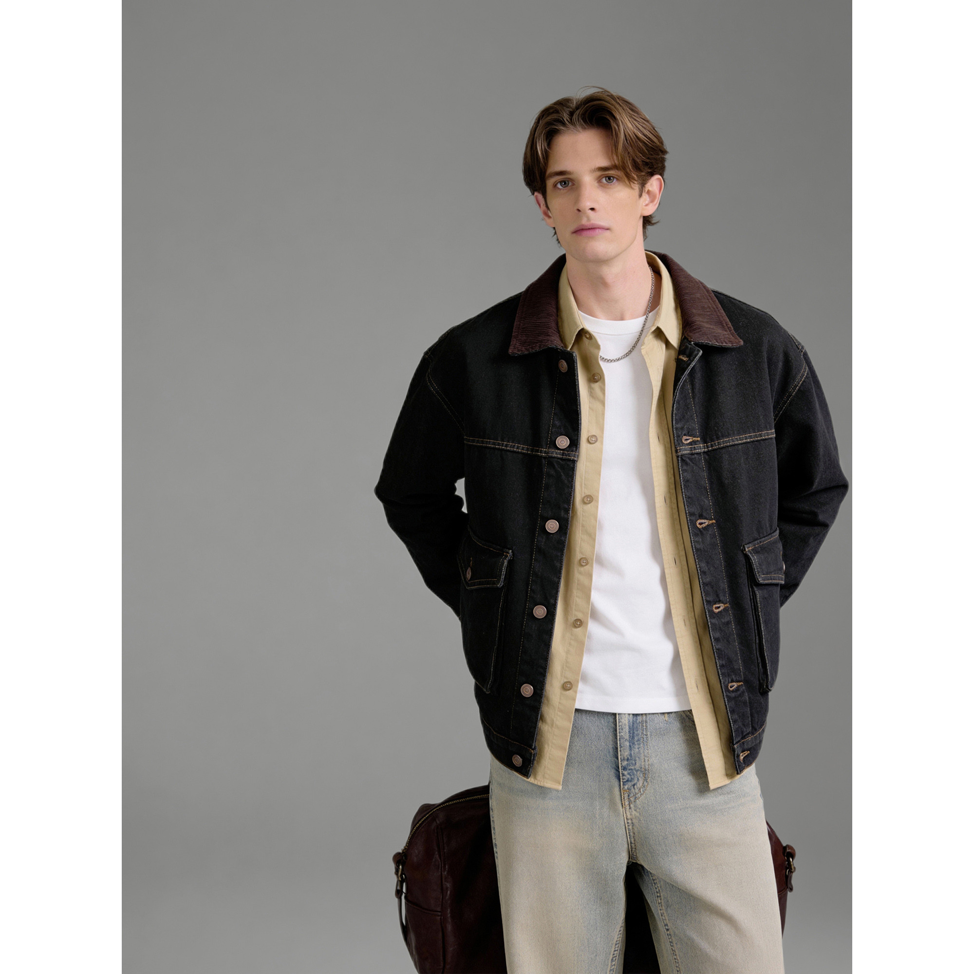 LUUD 100%纯棉异色辑明线牛仔夹克男早春工装风灯芯绒翻领外套潮