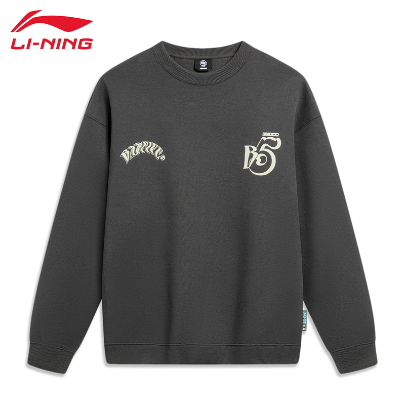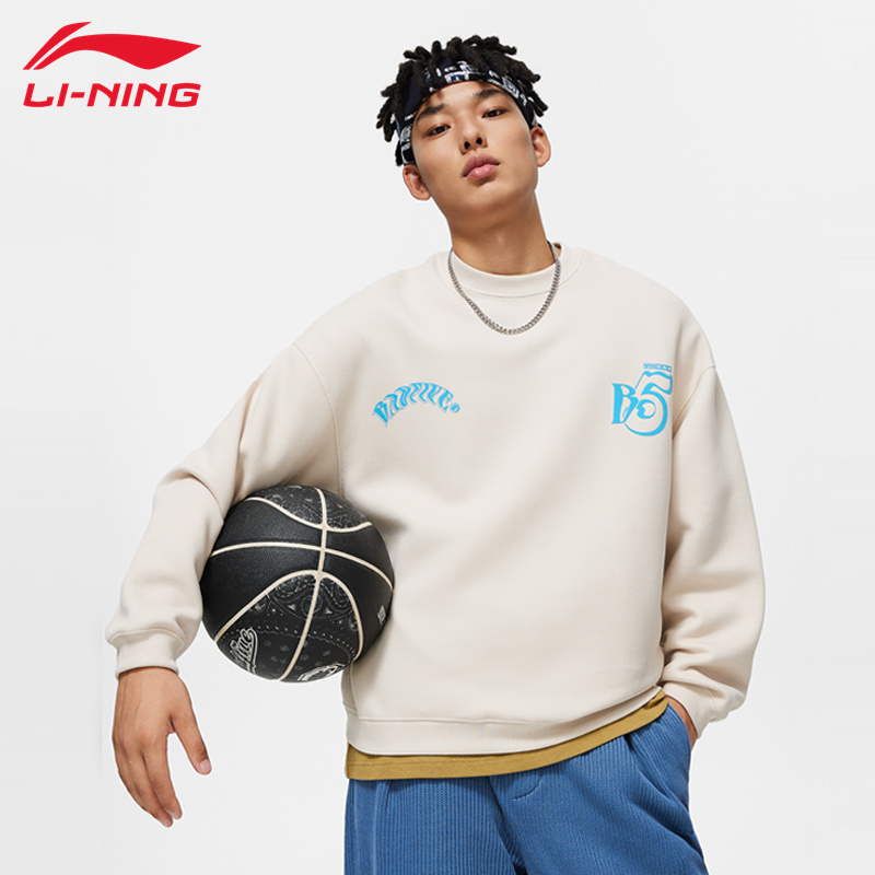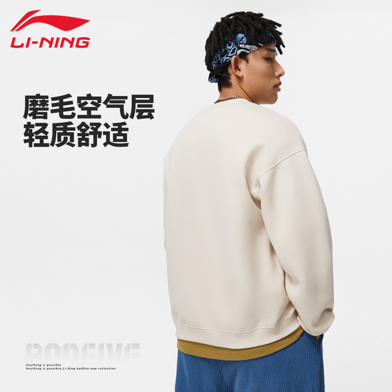 李宁卫衣男春秋反伍宽松潮流时尚舒适圆领无帽篮球运动休闲套头衫