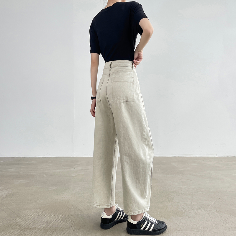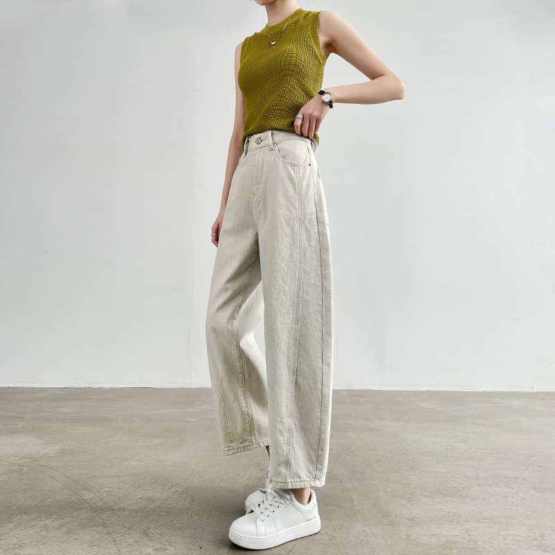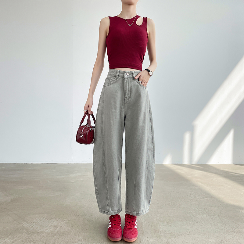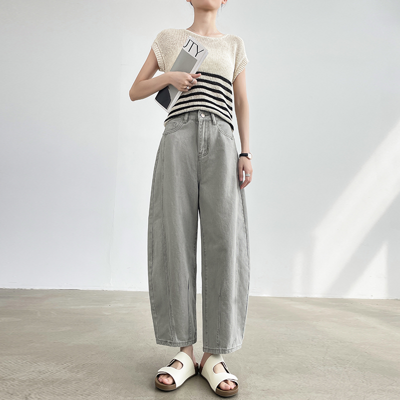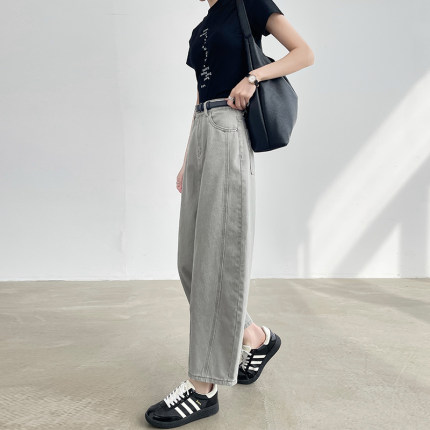 亚麻灰色哈伦牛仔裤女小个子春夏