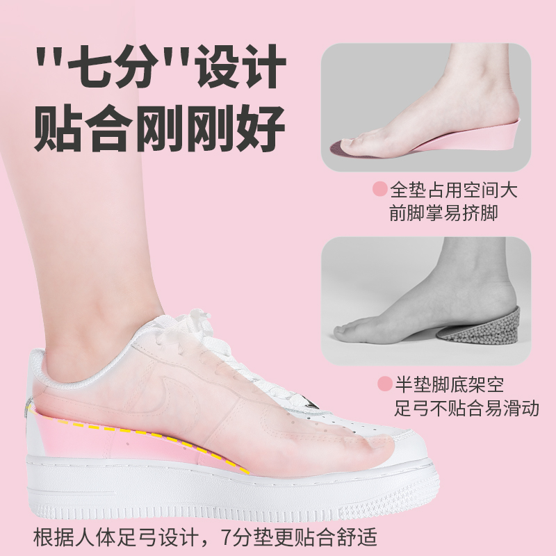 足弓支撑内增高鞋垫足印部落女款鲸鱼垫专用运动隐形七分垫半垫