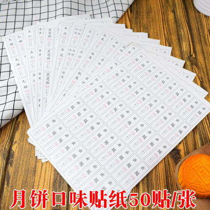 月饼口味贴纸五仁莲蓉冰皮原味豆沙枣泥月饼贴纸不干胶200贴