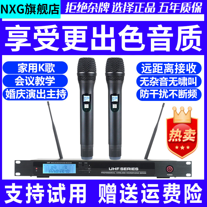 家用唱歌无线话筒一拖二婚庆舞台专业防啸叫演出手持K歌领夹头戴