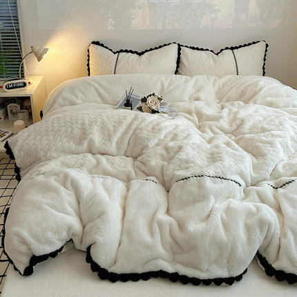 法式白色牛奶兔兔绒四件套公主风双面毛绒被套珊瑚绒床单冬季床品