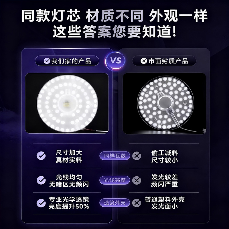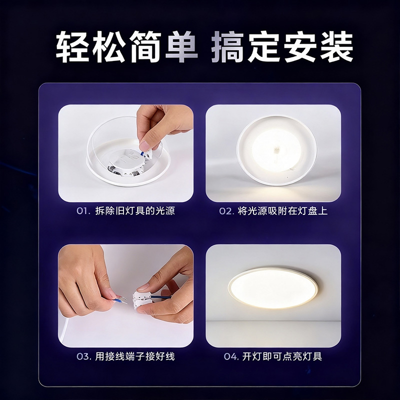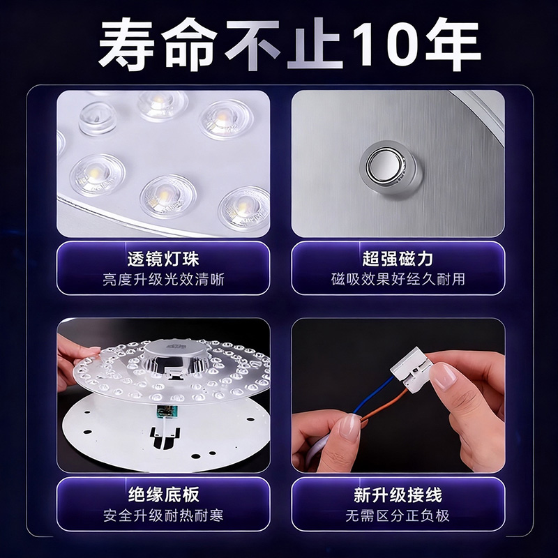 鼎雁led吸顶灯替换灯芯卧室客厅圆形灯盘磁吸灯板改造家用节能灯