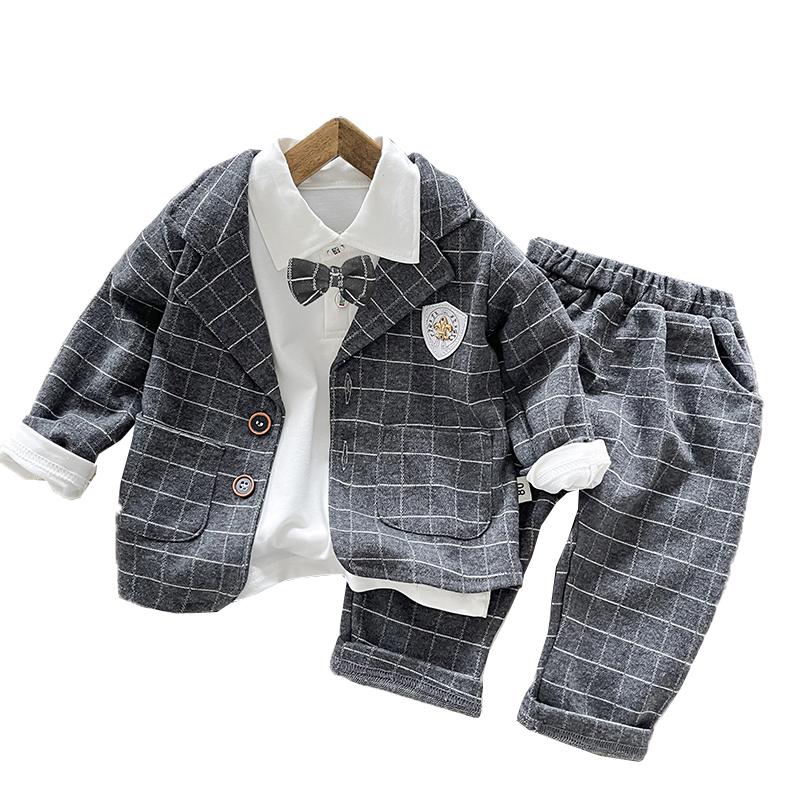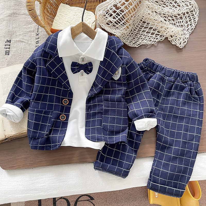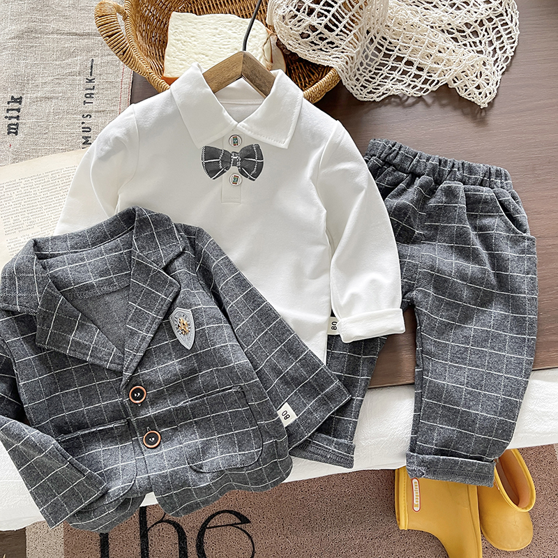 男童套装2025新款儿童西装三件套春秋款宝宝格子西服外套裤子童装