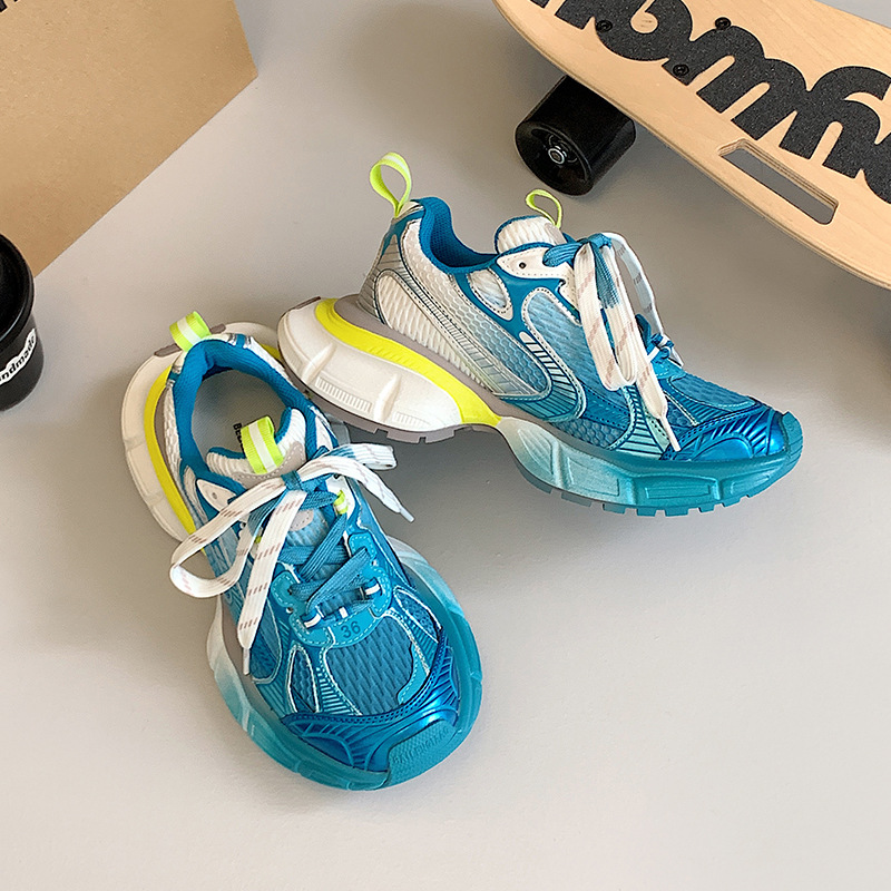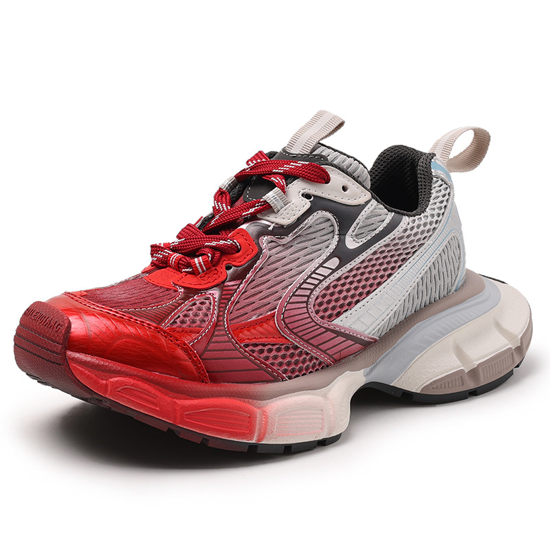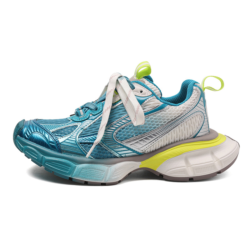 2025做旧脏脏舒适厚底老爹鞋拼接撞色跑步鞋镂空网眼厚底男女同款