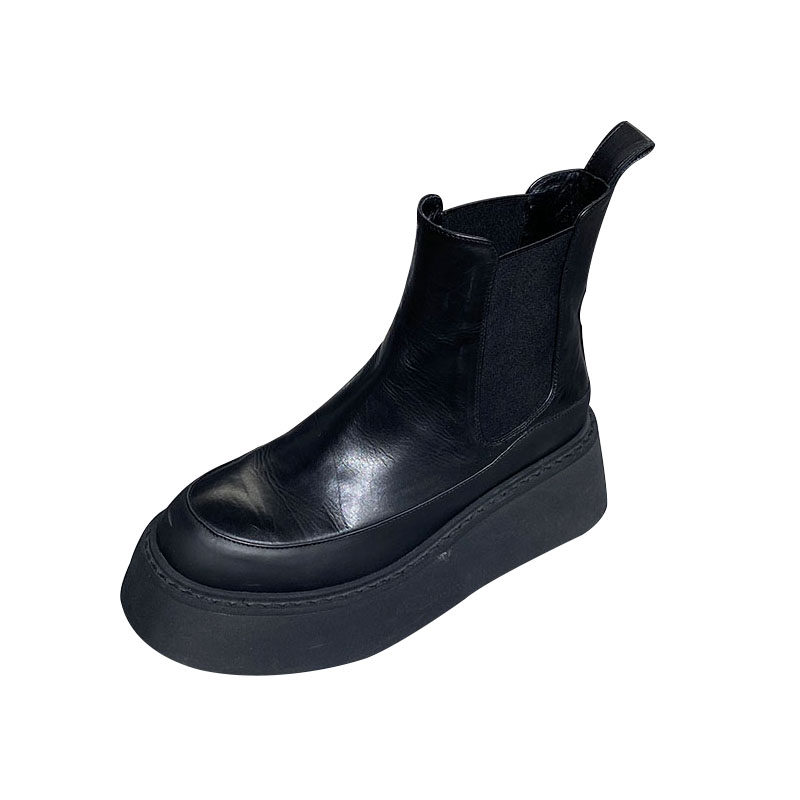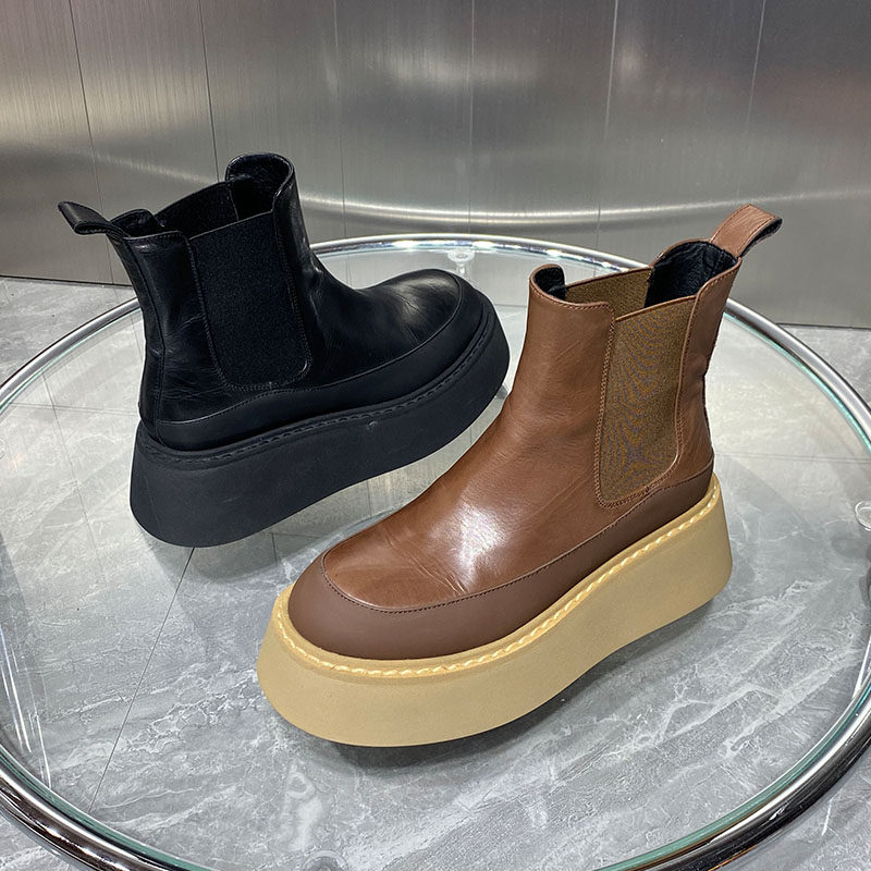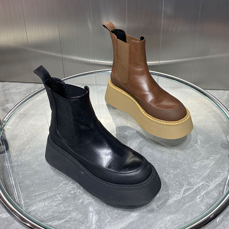 欧洲站2023年秋冬季新款女鞋真皮松糕底套筒英伦轻底百搭马丁靴女