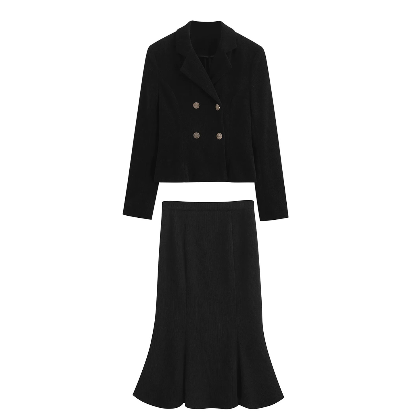 冬季灯芯绒高级感气质两件套赫本风鱼尾半身裙西装气质修身套装