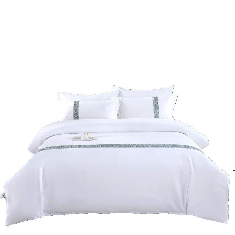 宾馆酒店床上用品布草纯白色床单被套四件套织带旅馆民宿风三西辰